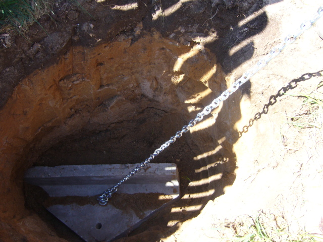 Maszt podtrzymywać będą 3 odciągi, z czego 2 zakotwiczone w ziemi i 1 przytwierdzony do ściany domu. Linki odciągów przymocowane będą do technicznego łańcucha galwanizowanego (DIN 5685/A o średnicy 6 mm), który przymocowany jest do betonowego bloku.