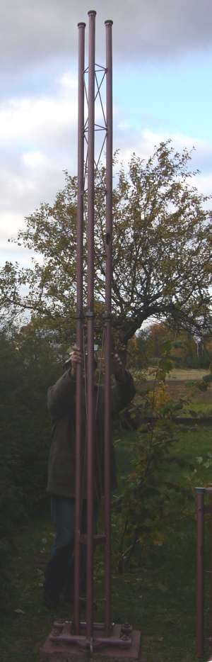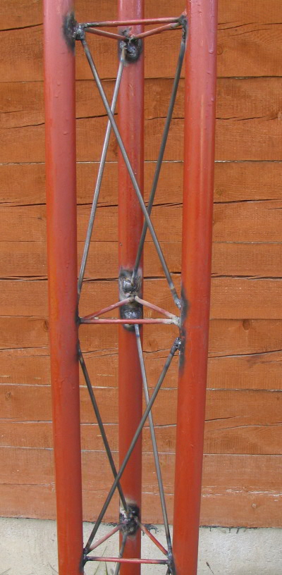 Maszt który stoi u mnie na działce nie ma klasycznej budowy kratownicy, gdyż nie ma takiej potrzeby. Dokonałem stosownych obliczeń w zaprzyjaźnionym biurze projektowym dla konstrukcji o dwóch poziomach odciągów z założeniem, że to one będą nadawać mu sztywność. Jak widać - masz stoi nadal.