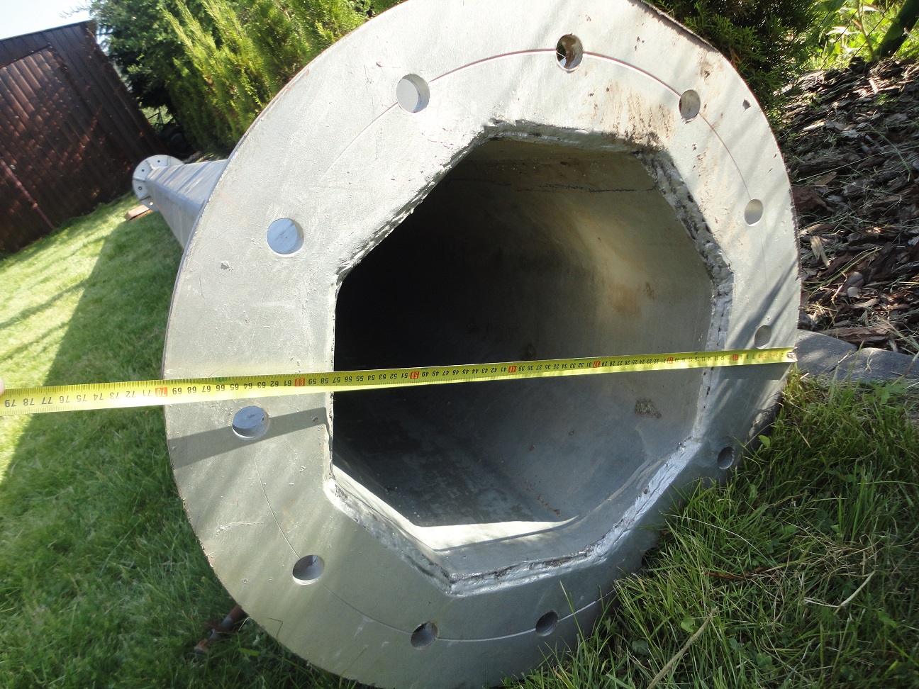 Rura ośmiokątna z blachy chyba 10mm .średnica rury na dole 46cm a na górze 13cm.