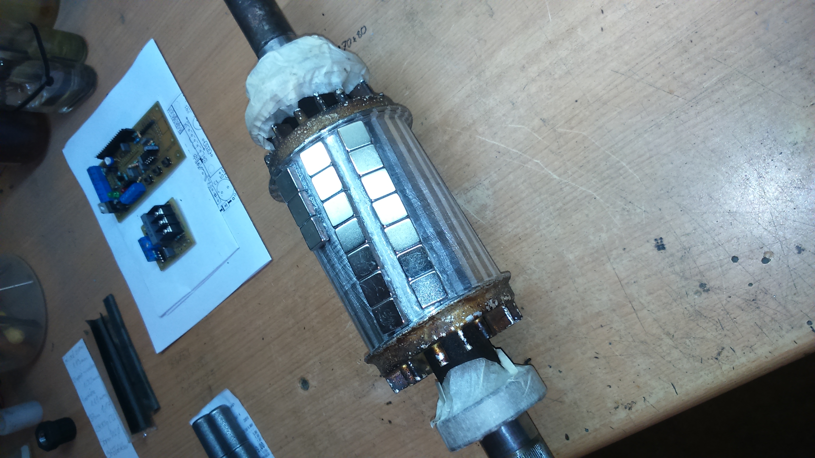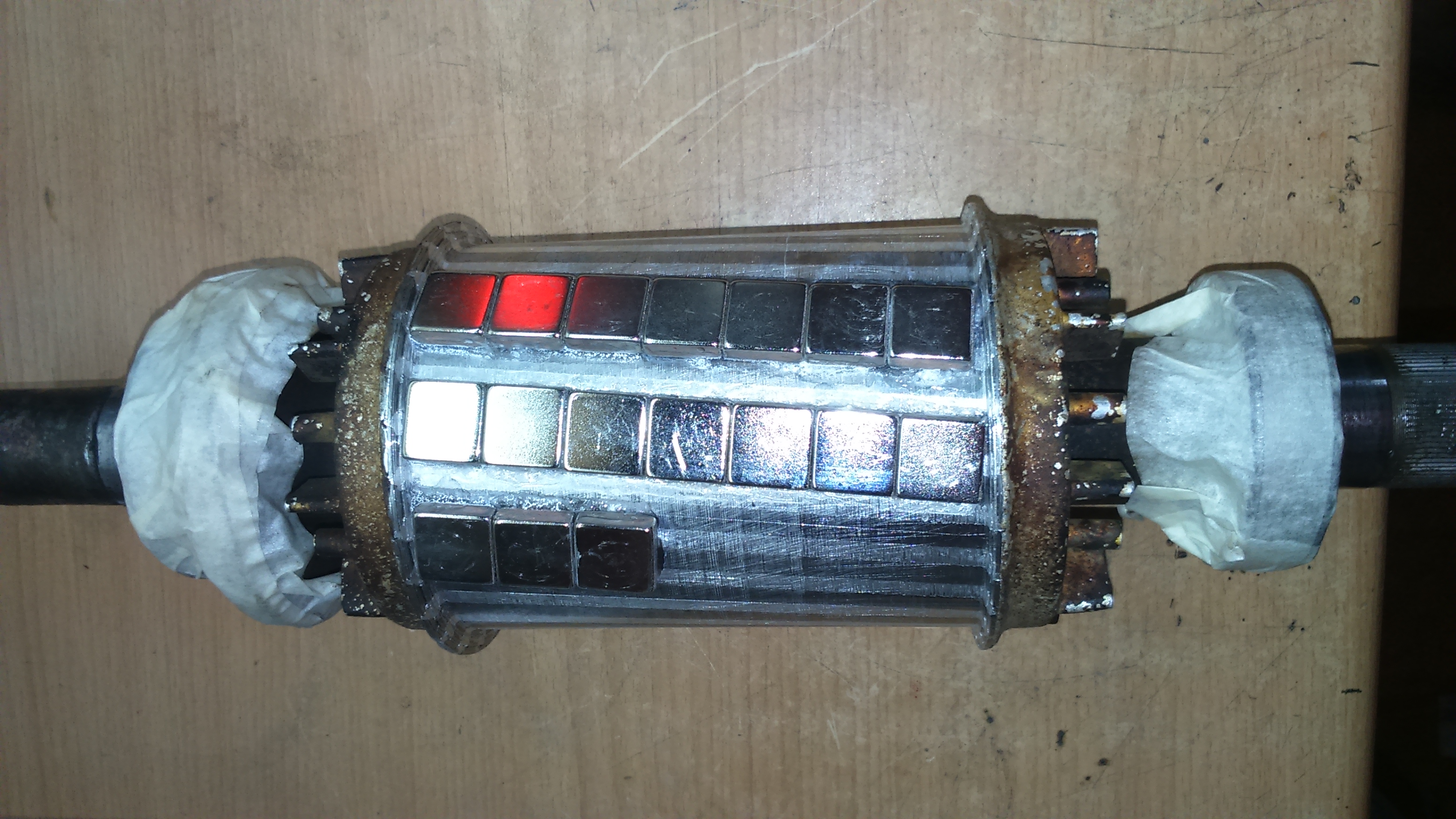 No i magnesy ładnie przyklejone, przetoczone i wirnik w stojanie. Jestem zadowolony, bez problemu ręką obracam wirnikiem w silniku. Są wyczuwalne małe zaskoki, jak i przy pierwszym ruchu trzeba lekko użyć siły, ale to jest w pełni akceptowalne.