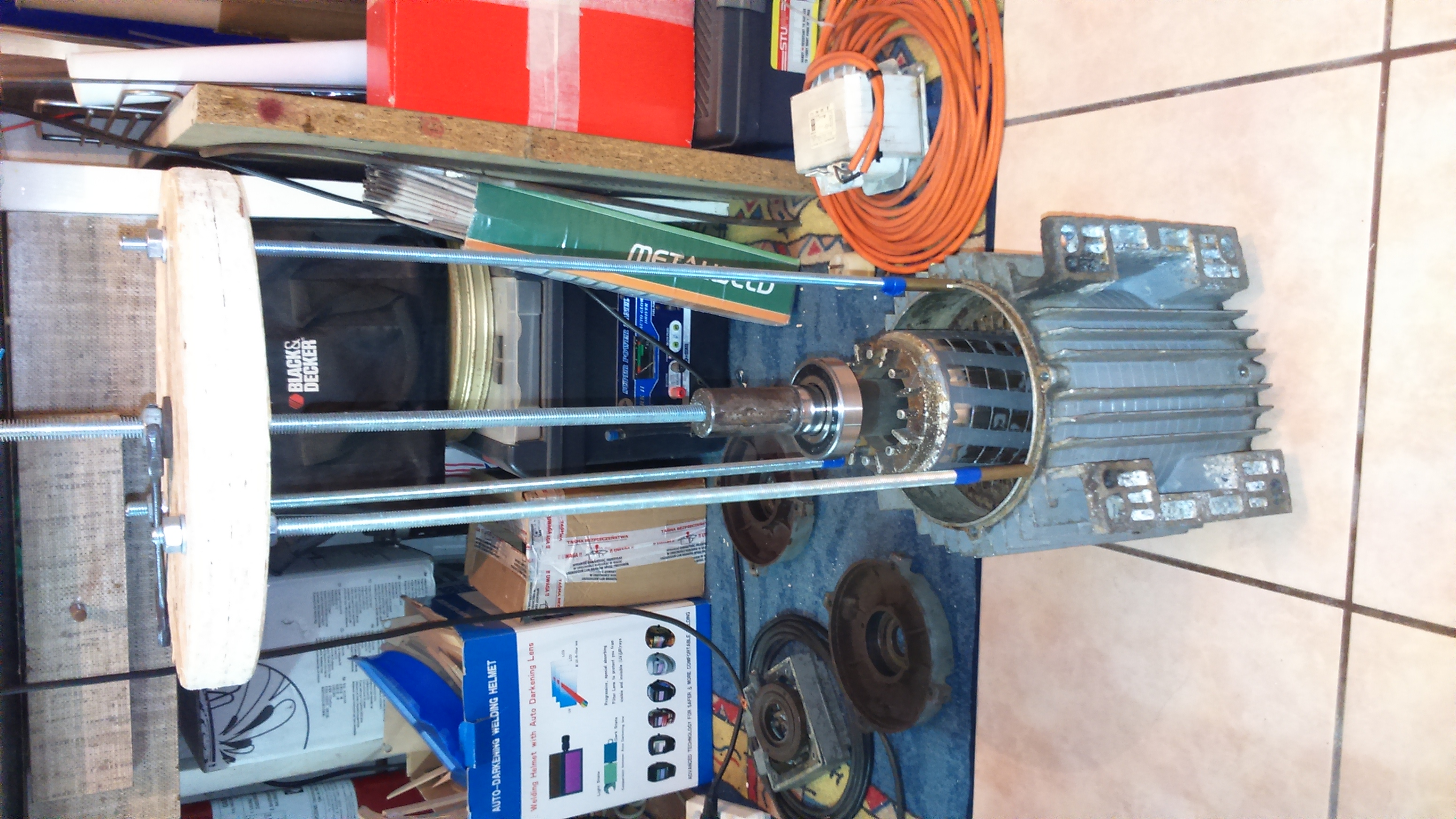 Zgłosił sie do mnie znajomy żebym przerobił mu taki silnik na prądnice. Na razie wiem że wirnik ma 96mm średnicy i około 100mm długości ma stojan. Silnik ma 36 żłobków. Ogólnie maszyna 3F 400V 1400 obr/min.