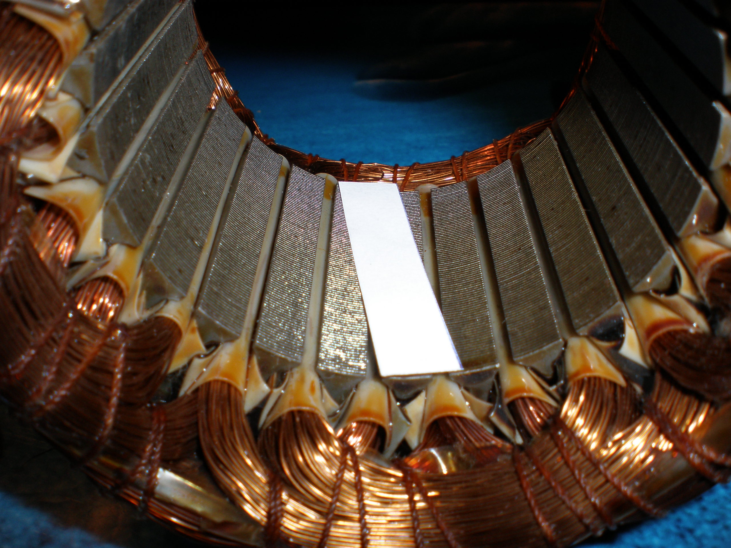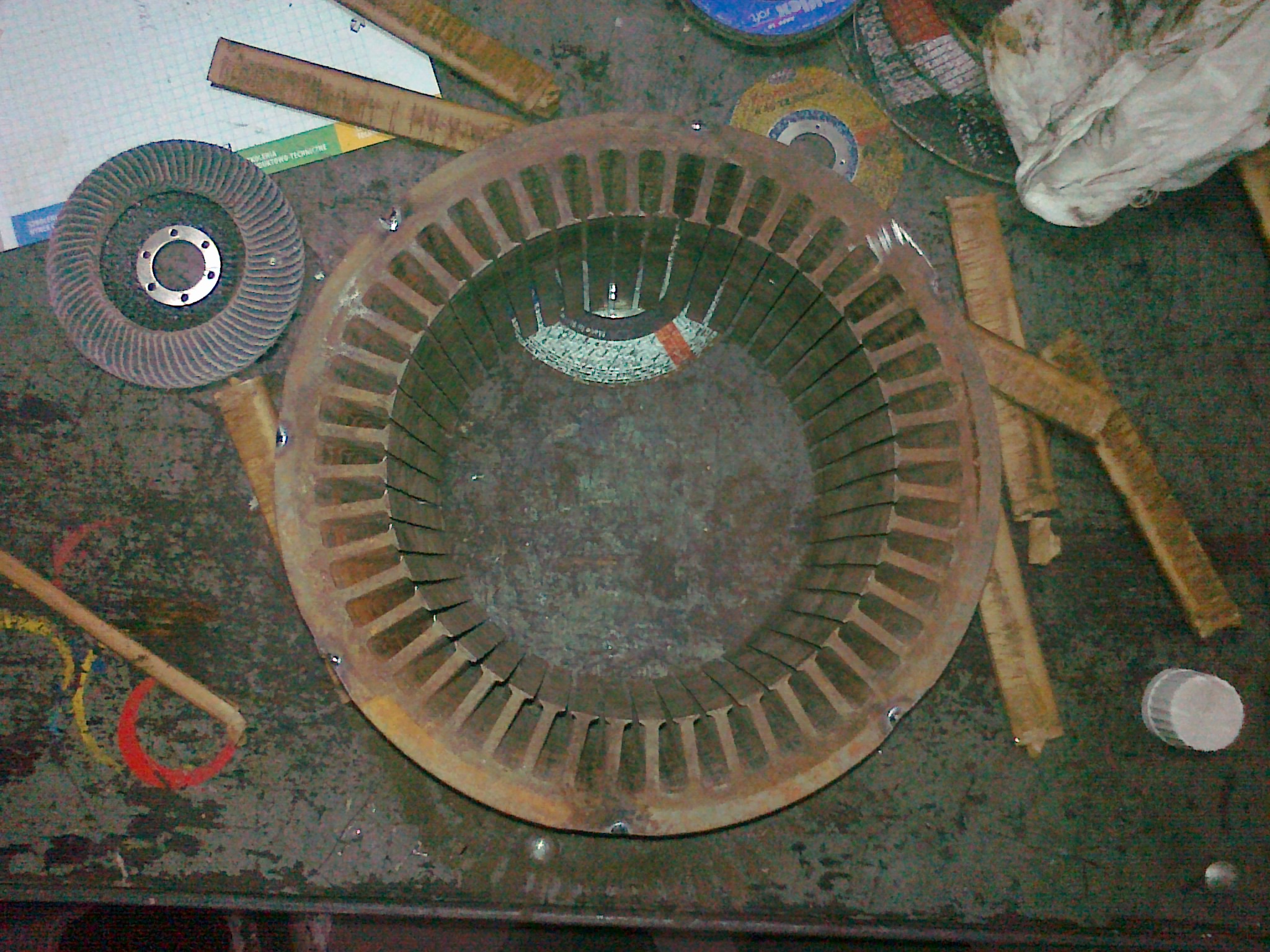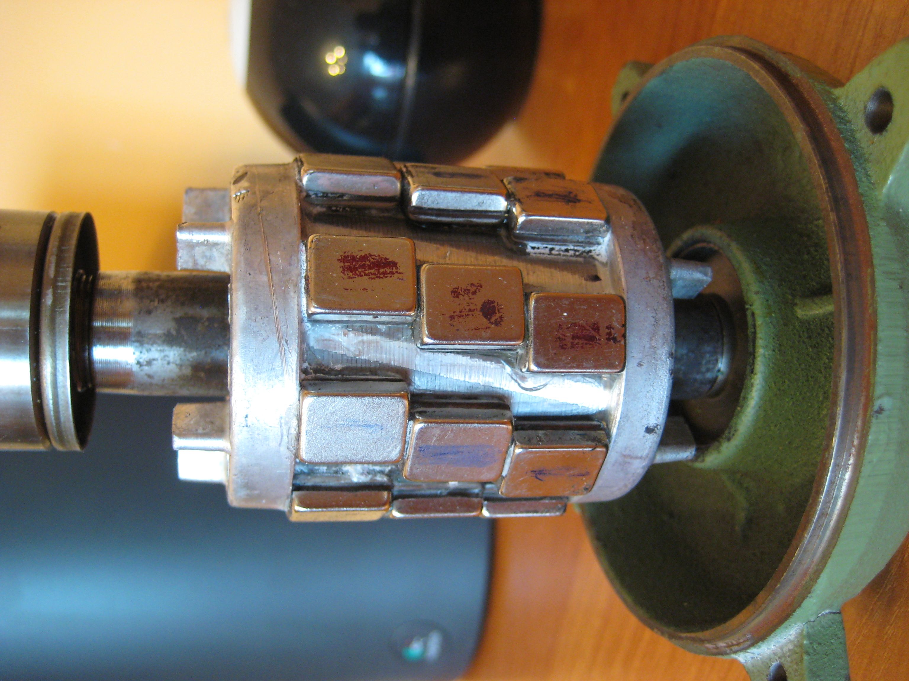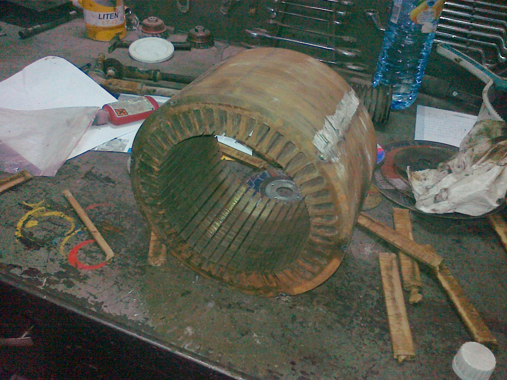 48 żłobków, 8 par biegunów magnetycznych, magnesy 15x15x5, nawinięte cewki z drutu 1mm po 38 zw. Kręcę jednym palcem i nie wyczuwam zaskoków.