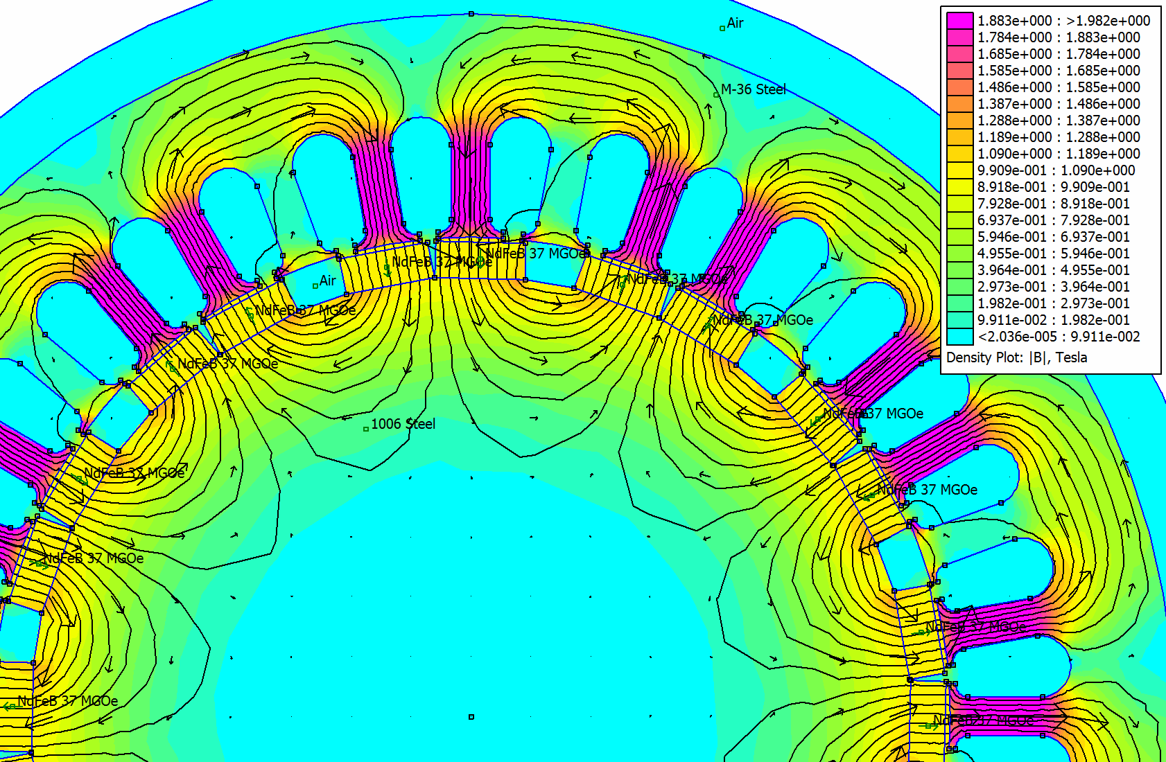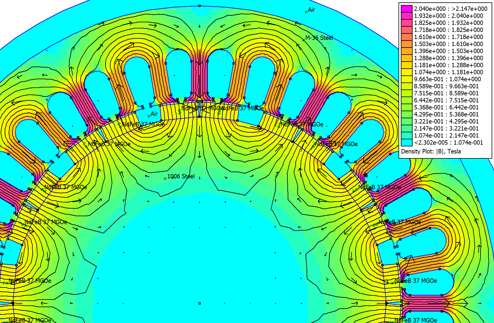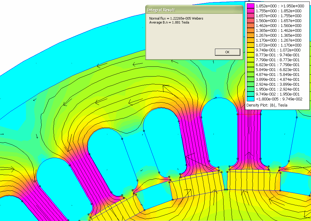 Normalnie blacha krzemowa nasyca się kompletnie przy ok. 1.7 Tesla a ty masz ponad 1,8 w trzonku zęba.