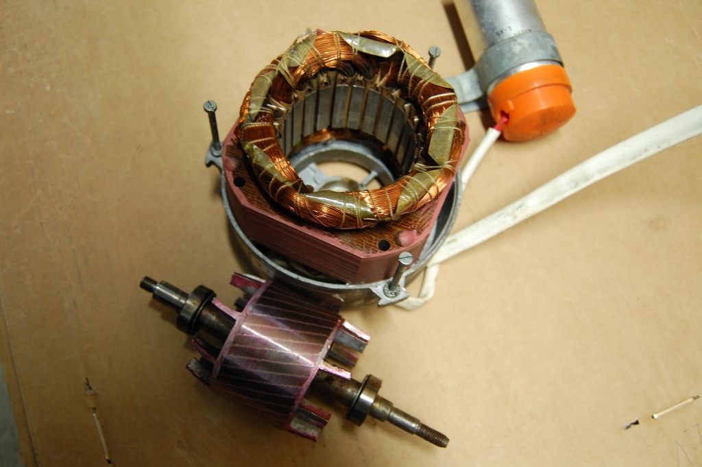 Prądnica z silnika od pralki Polar.