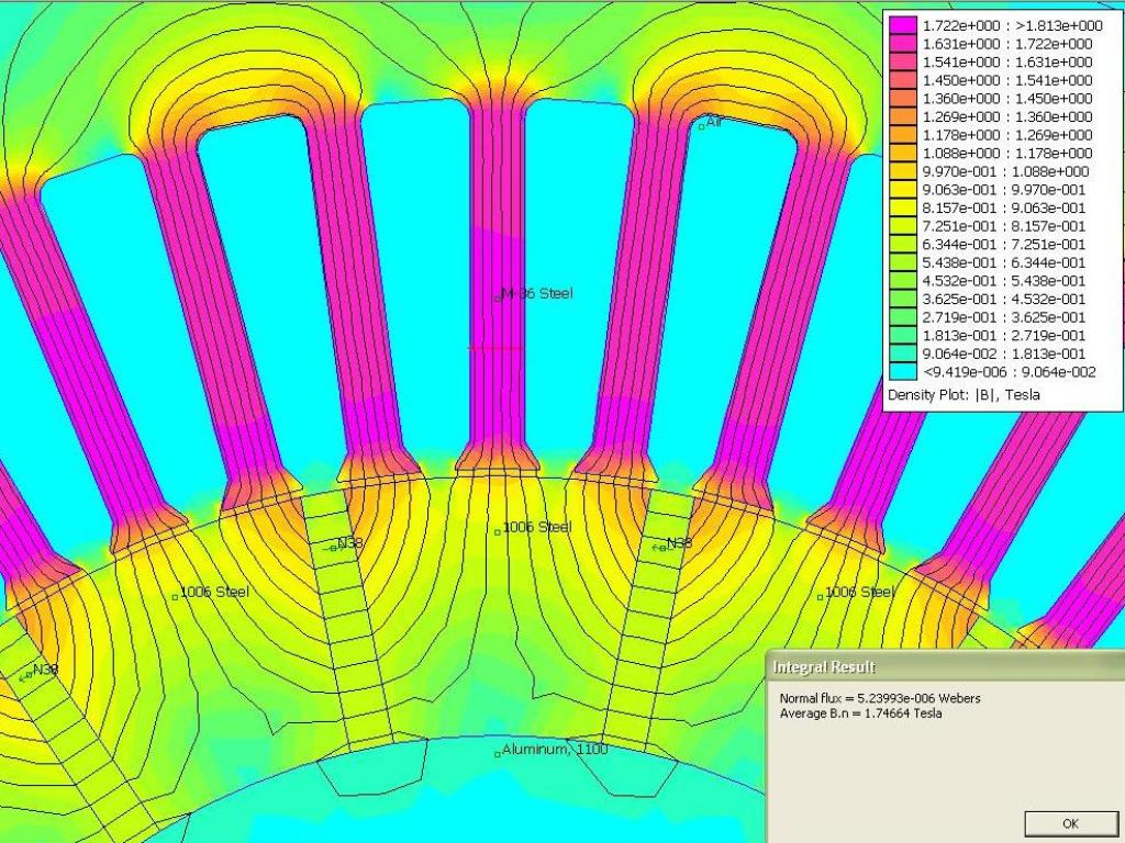 Zrobiłem trzy analizy z „użyciem” magnesów N38 o przekroju 7mm x 2,4 mm. dla średnicy stojana 98mm i średnicy wirnika 97,2mm, stojan 48 żłobków, 16 biegunów na wirniku.