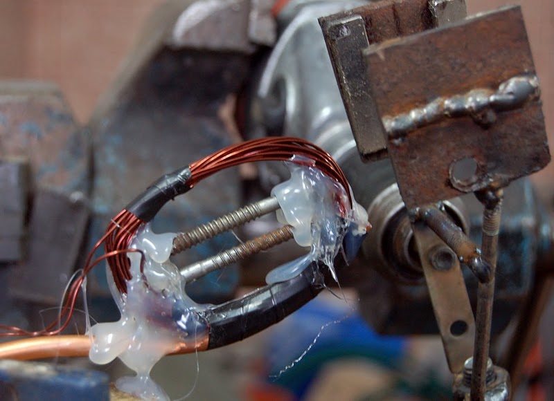 Wprowadzenie opiłków do żywicy (starannie wymieszanej!) powinno zwiększyć napięcie/moc prądnicy