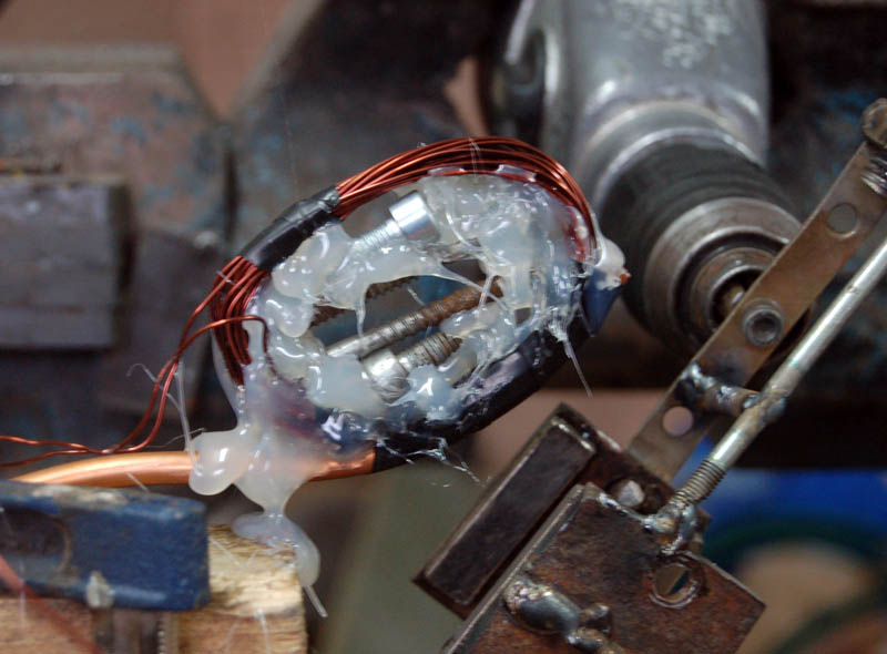 dodając do żywicy opiłków miękkiego żelaza. Zwiększy to znacznie natężenie strumienia magnetycznego