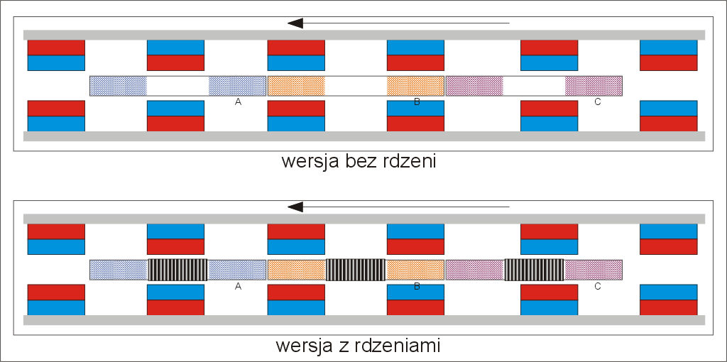 rysunek ma błędy. wystarczy spojrzeć na wzajemne położenia magnesów i cewek