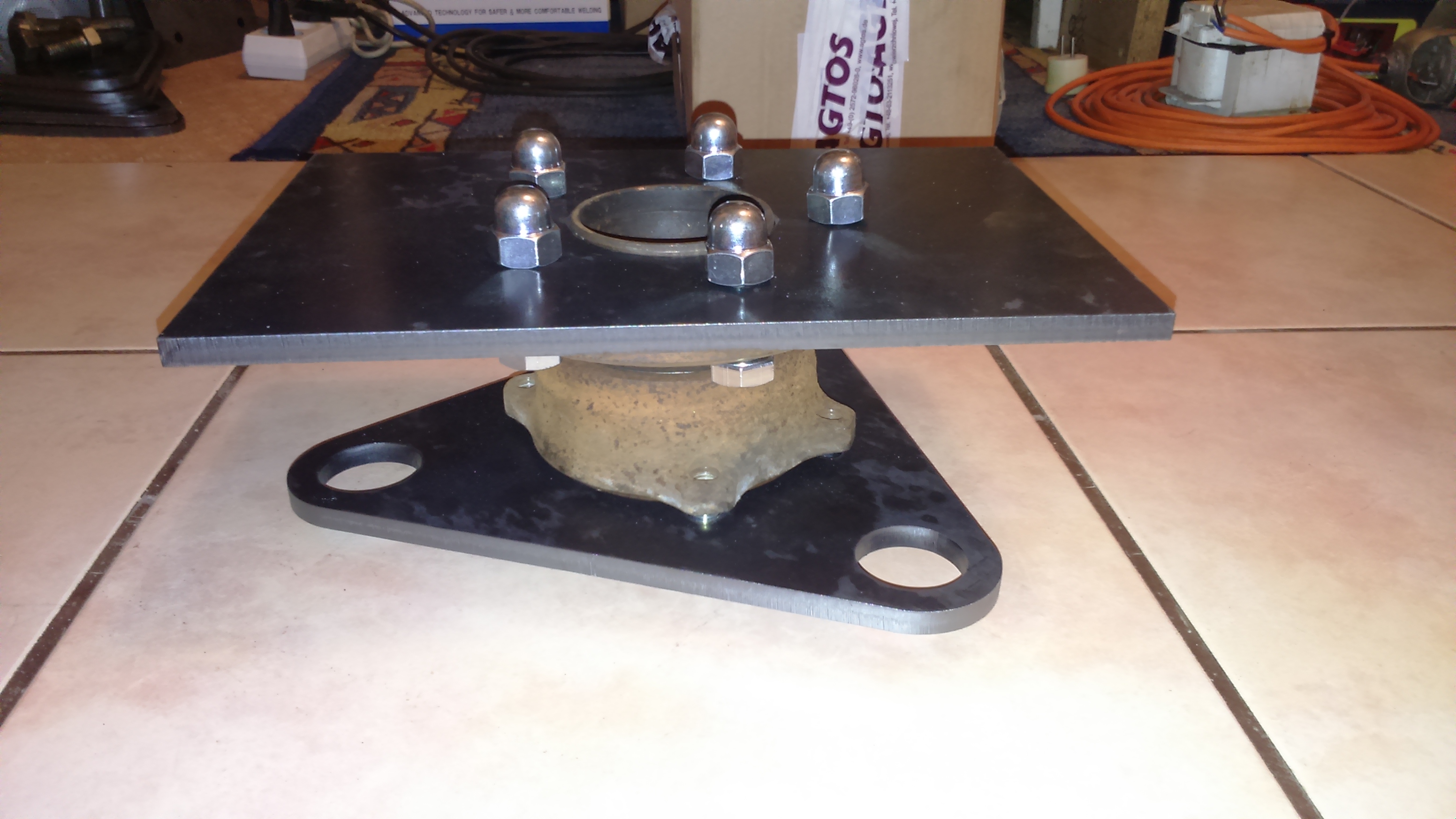 Ustaliłem także kąt 5 stopni pochylenia gondoli, i przyspawałem obrotnice.