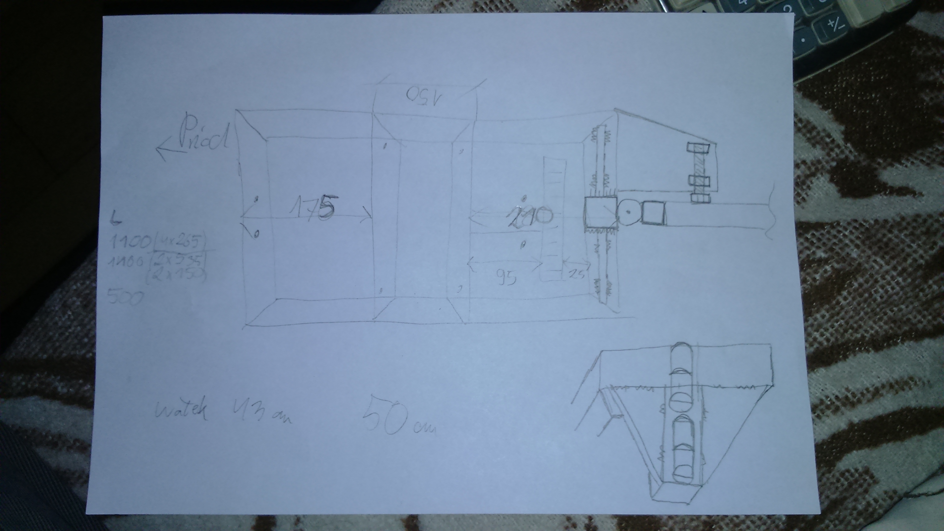 Co do obudowy to za bardzo nie chce całości szczelnie zakrywać. Będzie to po prostu kawał blachy ocynkowanej 0,5mm przykręcona od boku przez górę do drugiego boku. Przód i tył otwarte dla cyrkulacji powietrza. A przełożenie to 1:3.