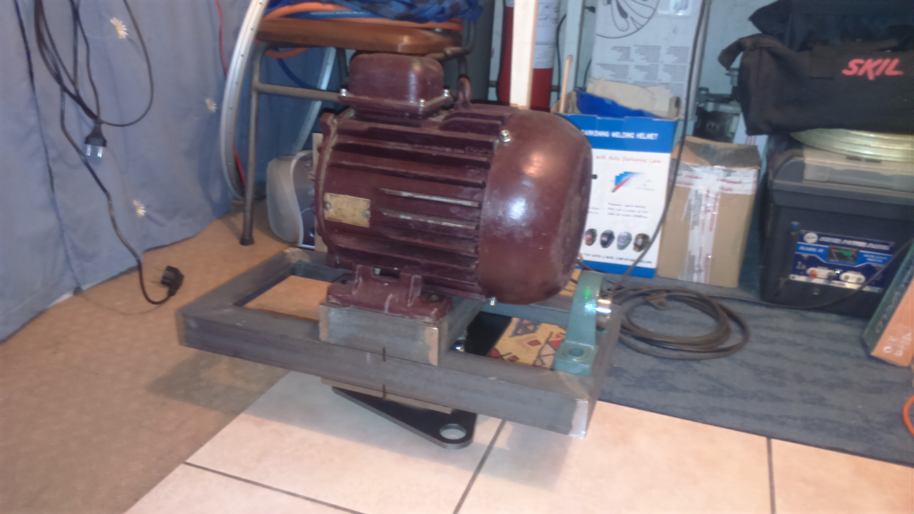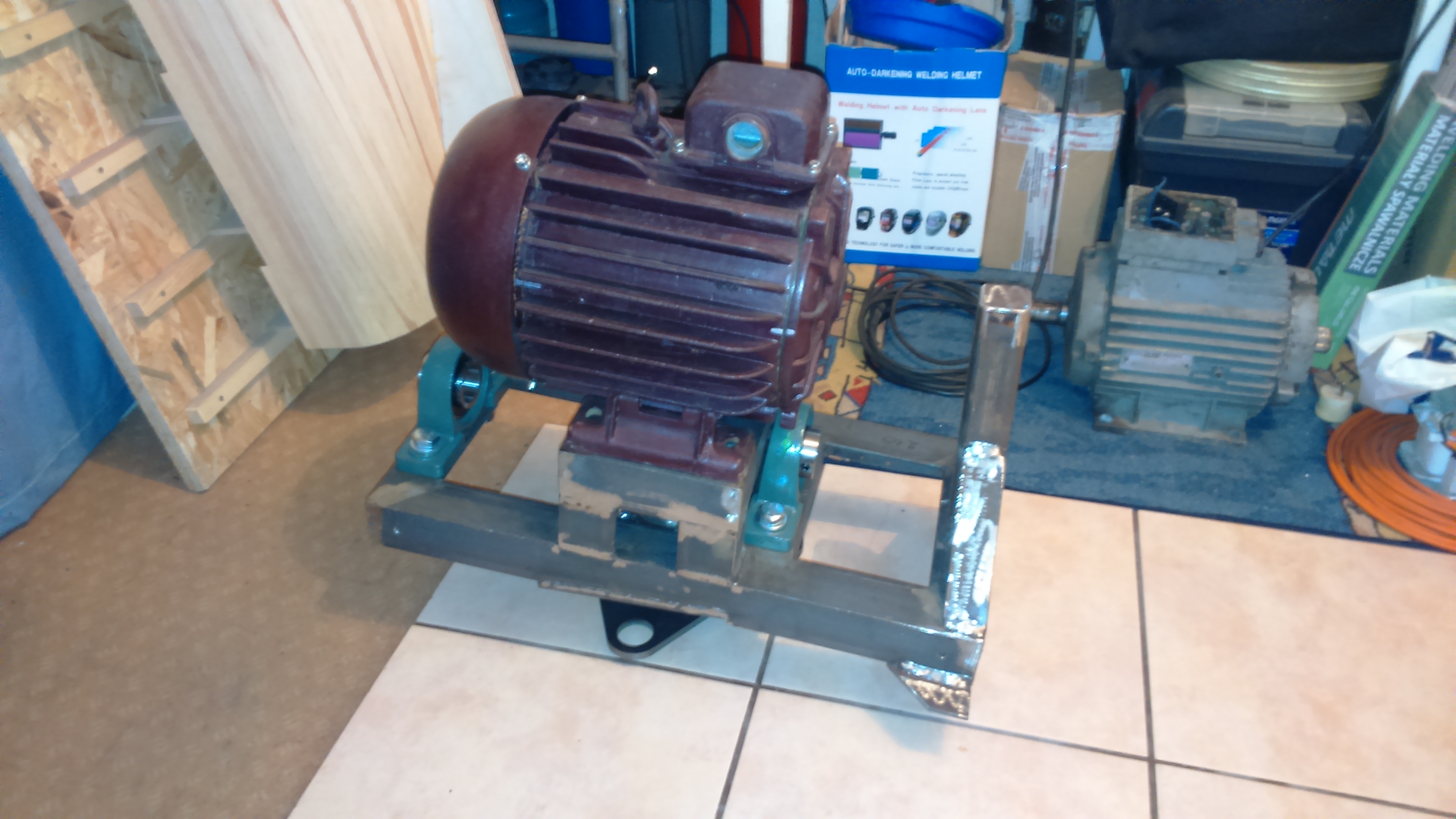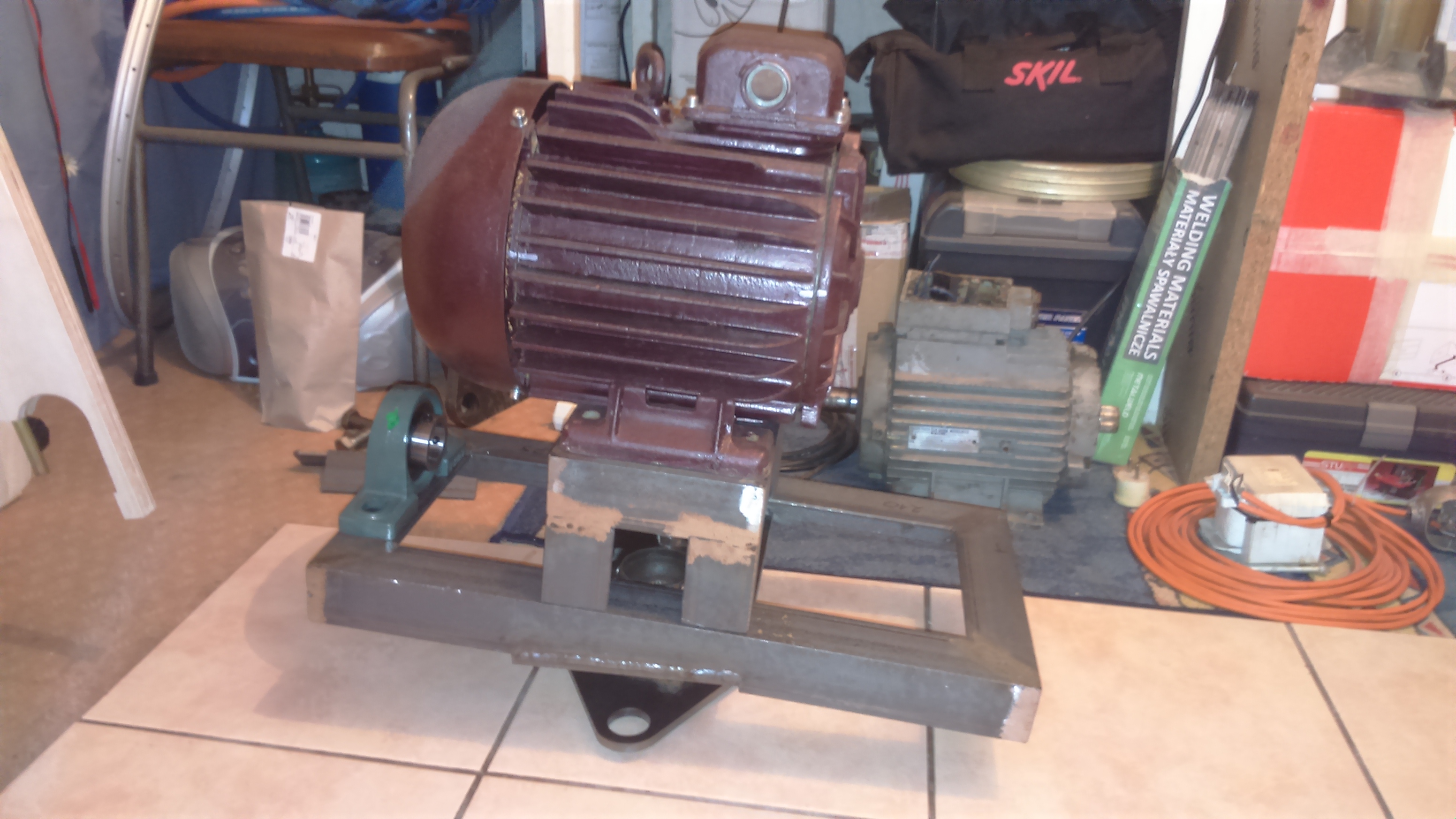 Tak wygląda podniesienie o 69mm. Wydaje sie że troche wysoko silnik stoi, ale małe koło ma 75mm, a duże ma 227mm średnicy. Pasek ma 92 zęby i odstęp między kołami to 35mm. Kolejny niższy pas ma 86Z, ale wtedy odstęp pomiędzy kołami to jedyne 2mm. Troche za mało, więc pozostaje 92Z.