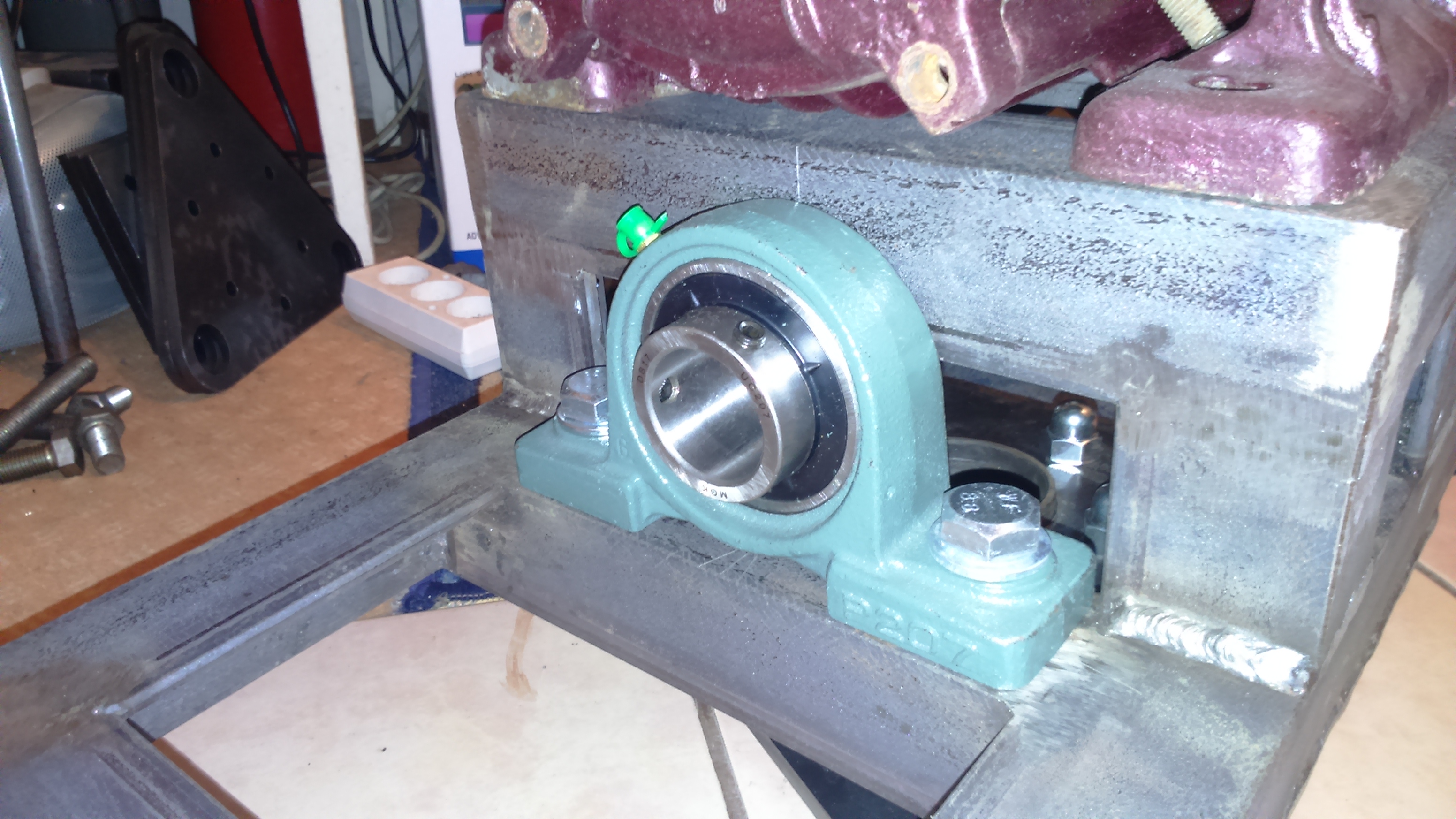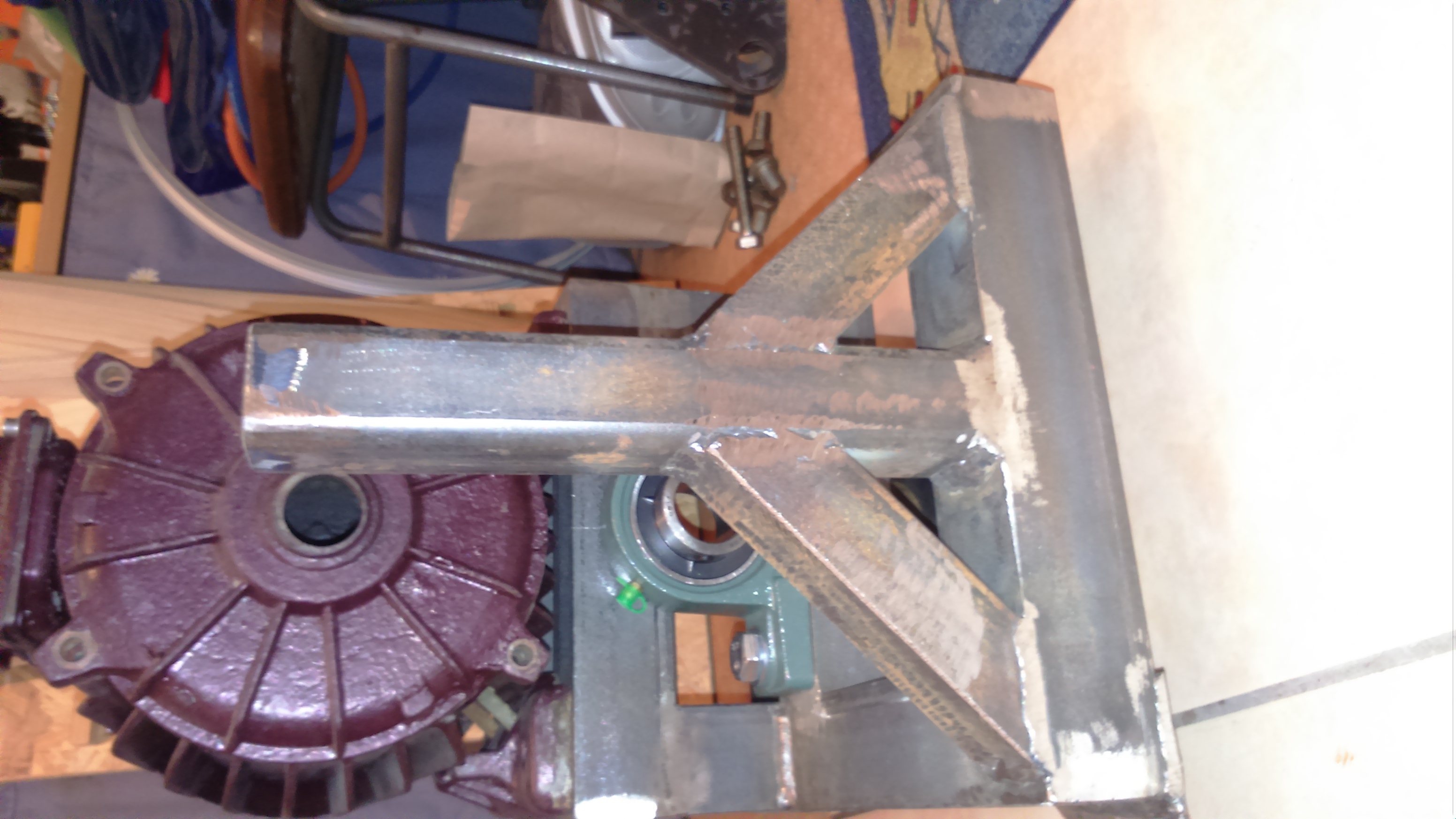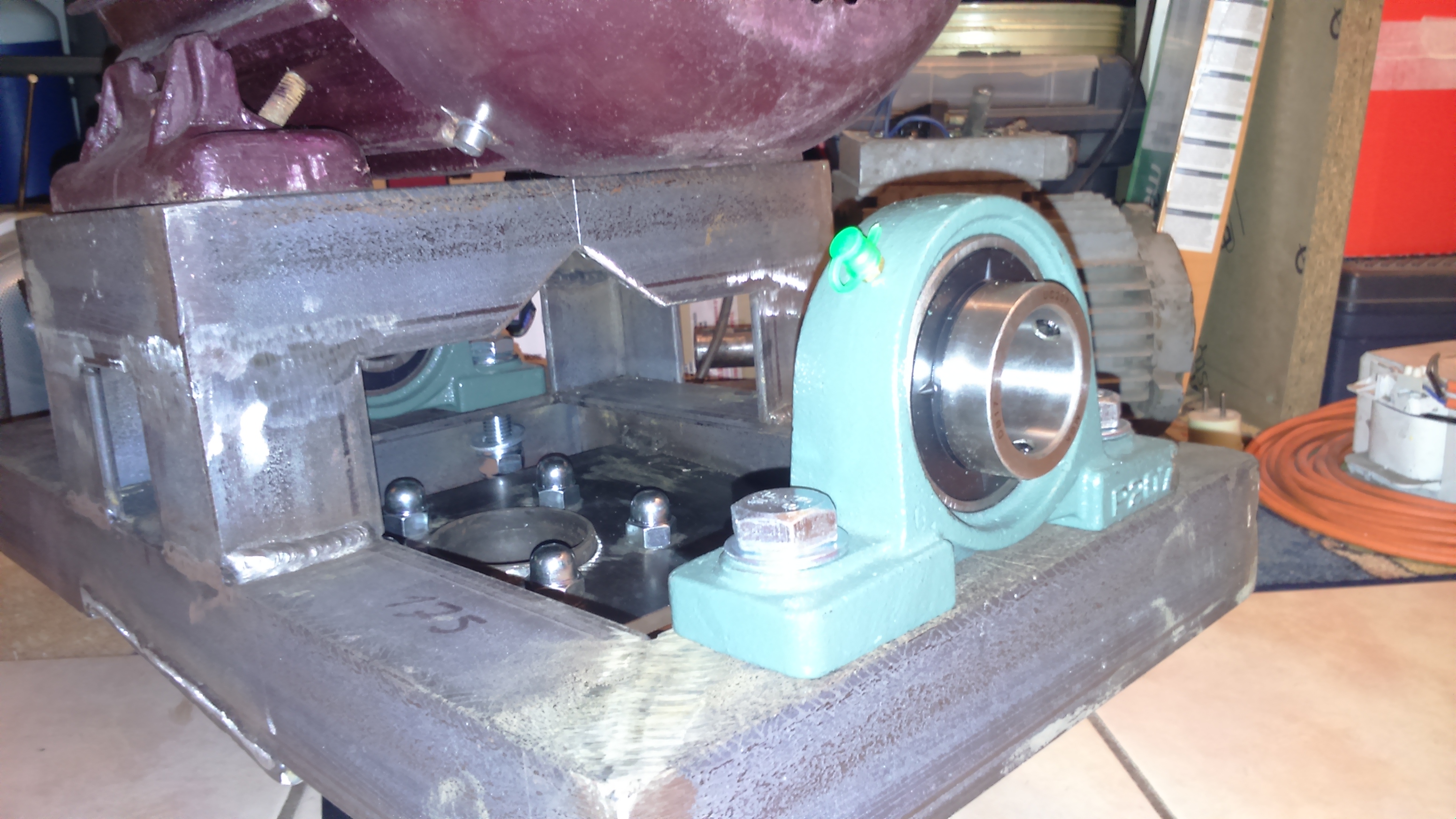 Na razie mam już obrotnice na piaście od mercedesa i parę blach, łożyska na oś turbiny i kątownik. Przekładnia na pasku zębatym się robi, i materiał na wał(35mm x 45cm) już też jest.