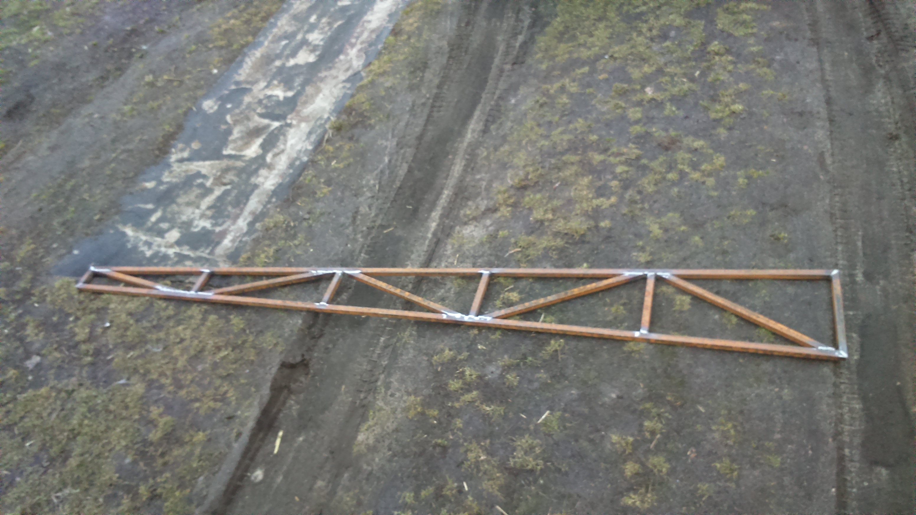 I ogon już wyspawany. Kratownica, długość 2,5m z profilu 20x20x2