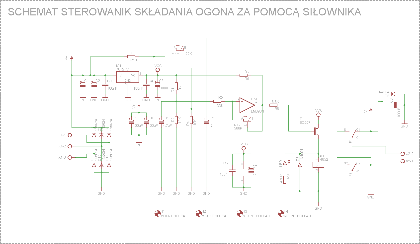 Jak obiecałem tak zrobiłem oto mój schemat sterownika składania ogona za pomocą siłownika elektrycznego