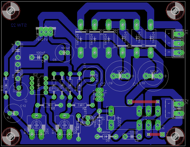 Tak na szybko odpowiadając na twoje pytanie to możesz przesunąć zakres regulacji za pomoc zmian wartości rezystorów R1 i R2 oraz R4 i R10 , musisz niestety pokombinować samemu. Jeżeli chodzi o płytkę to oczywiscie umieszczę plik na forum mogę też przesłać na e- maila ( ale dopiero w wekend bo nie mam kompletnie czasu ). Niestety jakiś czas temu miałem awarię kompa i musiałem przeinstalowywać system , pliki są gdzieś na płycie muszę szukać ( jeszcze nie zainstalowałem nawet eagla).