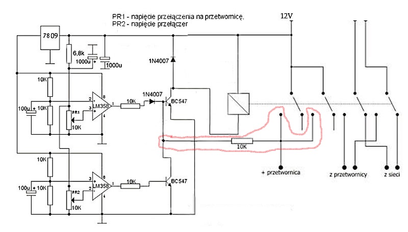 Chciał bym jednak PR1 ustalać napięcie załączenia i na PR2 napiecie wyłączenia przekażnika, żeby mieć regulacje histerezy. Po zlikwidowaniu tego obwodu bedzie to możliwe? Mógłby Pan Panie waldku doszkicować odręcznie połączenia?