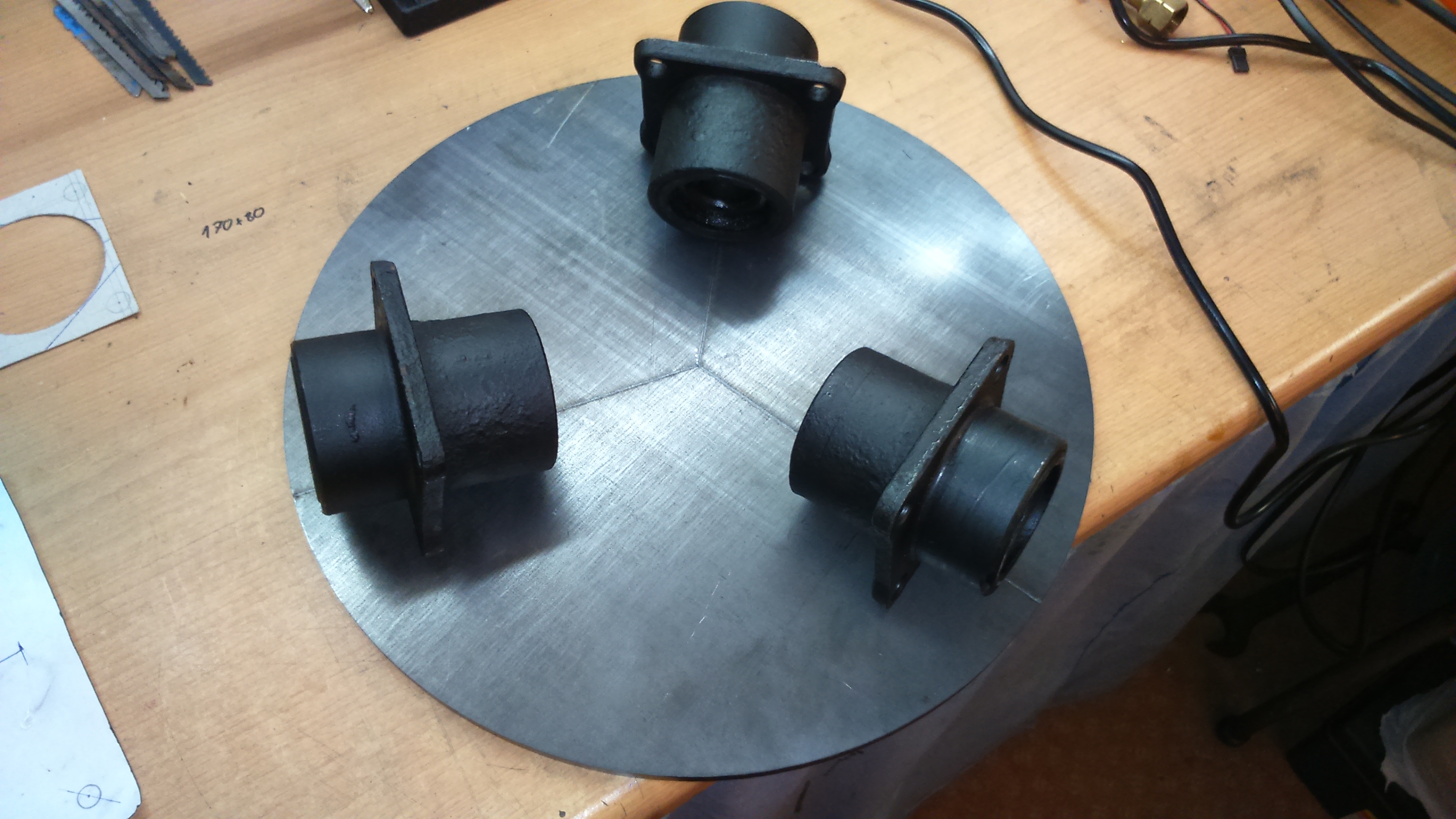 Taki zestaw,czyli mocowanie plus piasta (bez łożysk i osi)waży 1800g x 3. A do tego jeszcze tarcza śmigła i reszta.