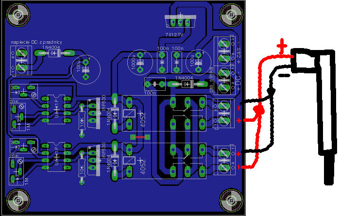 Po podłączeniu zasilania do układu z akumulatora na wejściach komparatorów były takie napięcia: 1 ten na dole nóżka 2-5,28V, nóżka 3-0,63V, nóżka 6-1,9V, nóżka 7- 9,8V na drugim ten przy dzielniku: nóżka 2-0,1V nóżka 3-5,5V nóżka 6-9,0V, nóżka 7-9,8V, co jakiś czas było słychać stukanie któregoś z przekaźników. Poza tym nic się nie działo. Na wyjściach zasilania siłownika - 0V? :mrgreen: