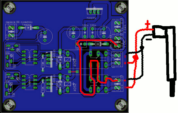 ...pozostaje tylko problem podłączenie siłownika posiadającego jedna parę przewodów do w/w układu.