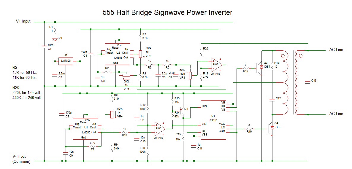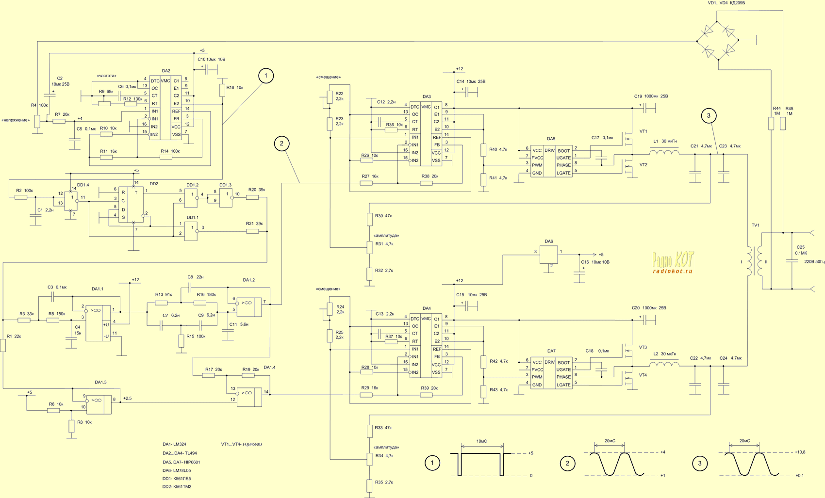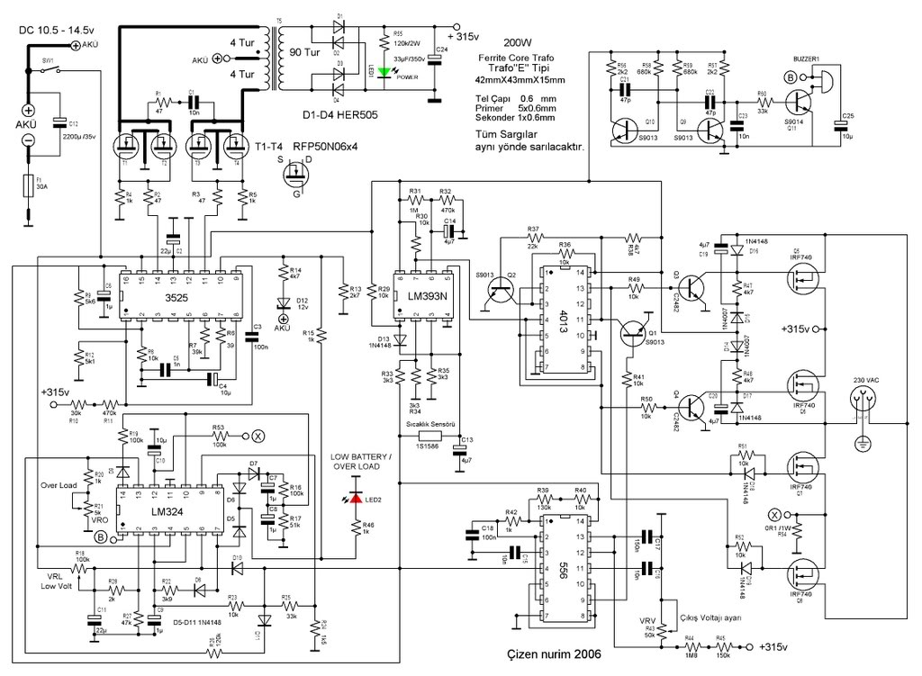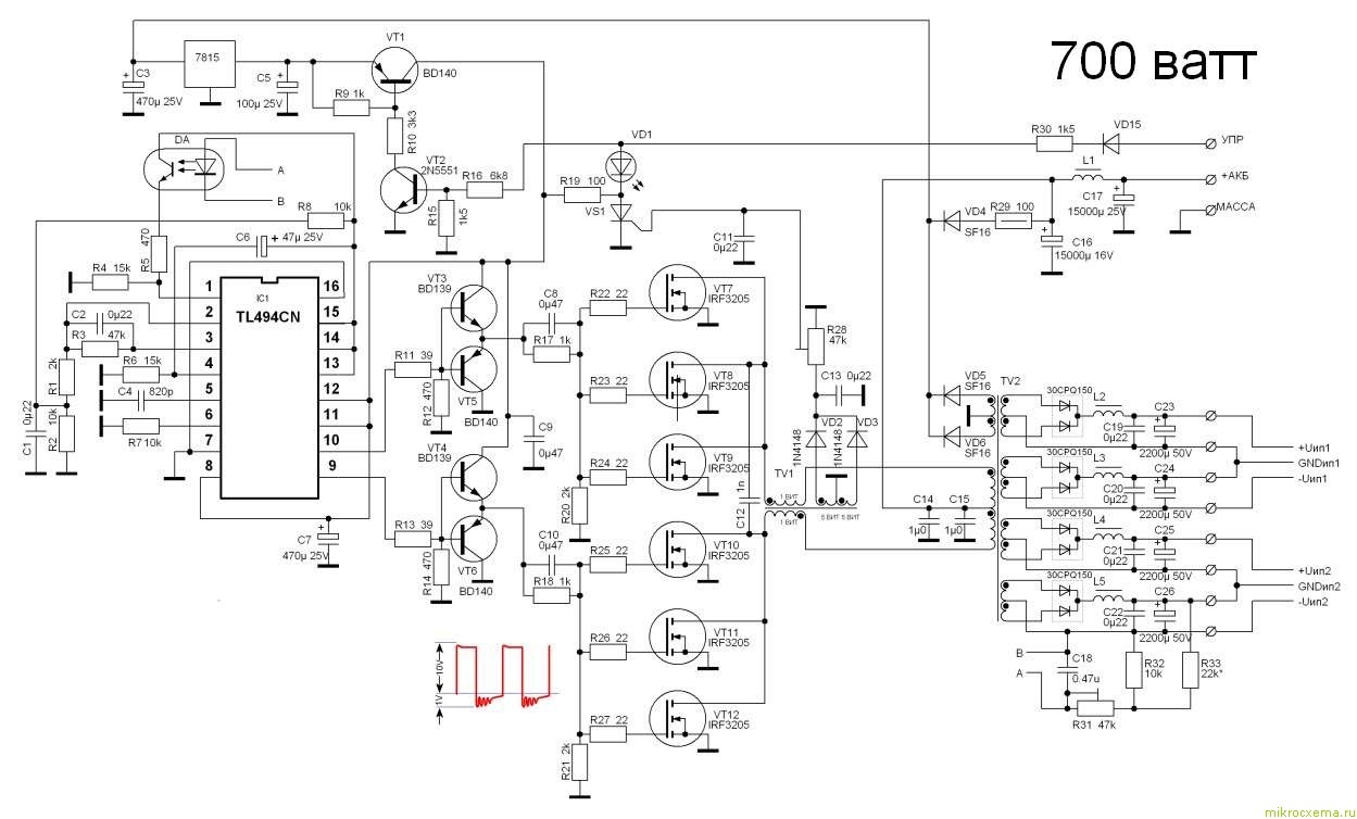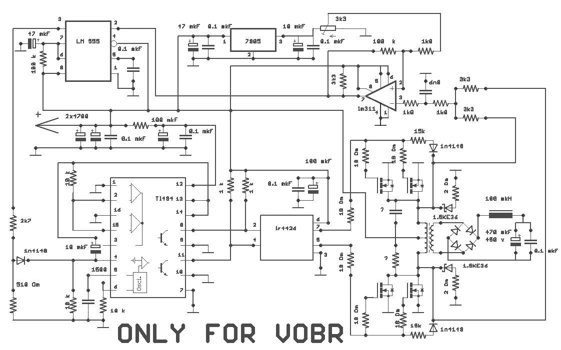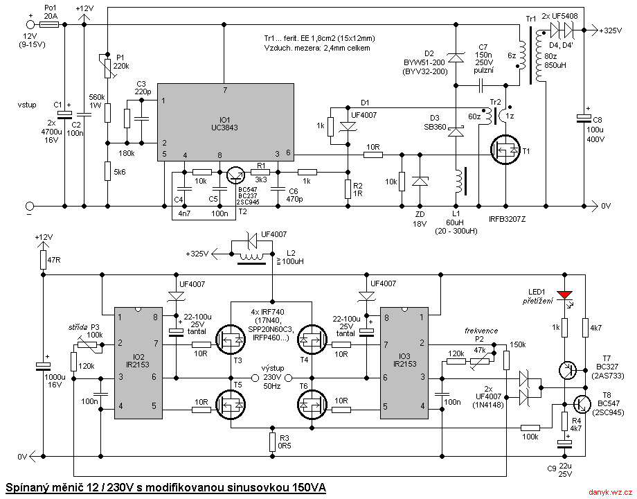 Mariusz napisał(a):Jak znajdę to podeślę schemat przetwornicy 12VDC-230VAC z sinusem na transformatorze ferrytowym. Dość drogie są jednak tranzystory wysokonapięciowe tam zastosowane.