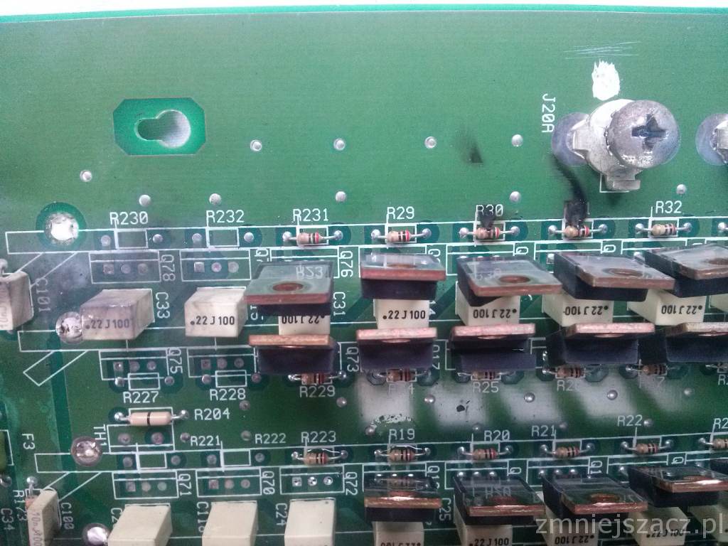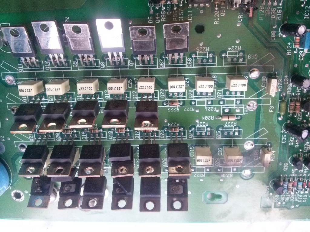Gałązka tranzystorów od Q11 do Q68 chyba ocalała reszta chyba padła ale pewnie wymienię je wszystkie (jak je sprawdzić ? wiem tyle że jak mają zwarcie pomiędzy nóżkami to kaput. )