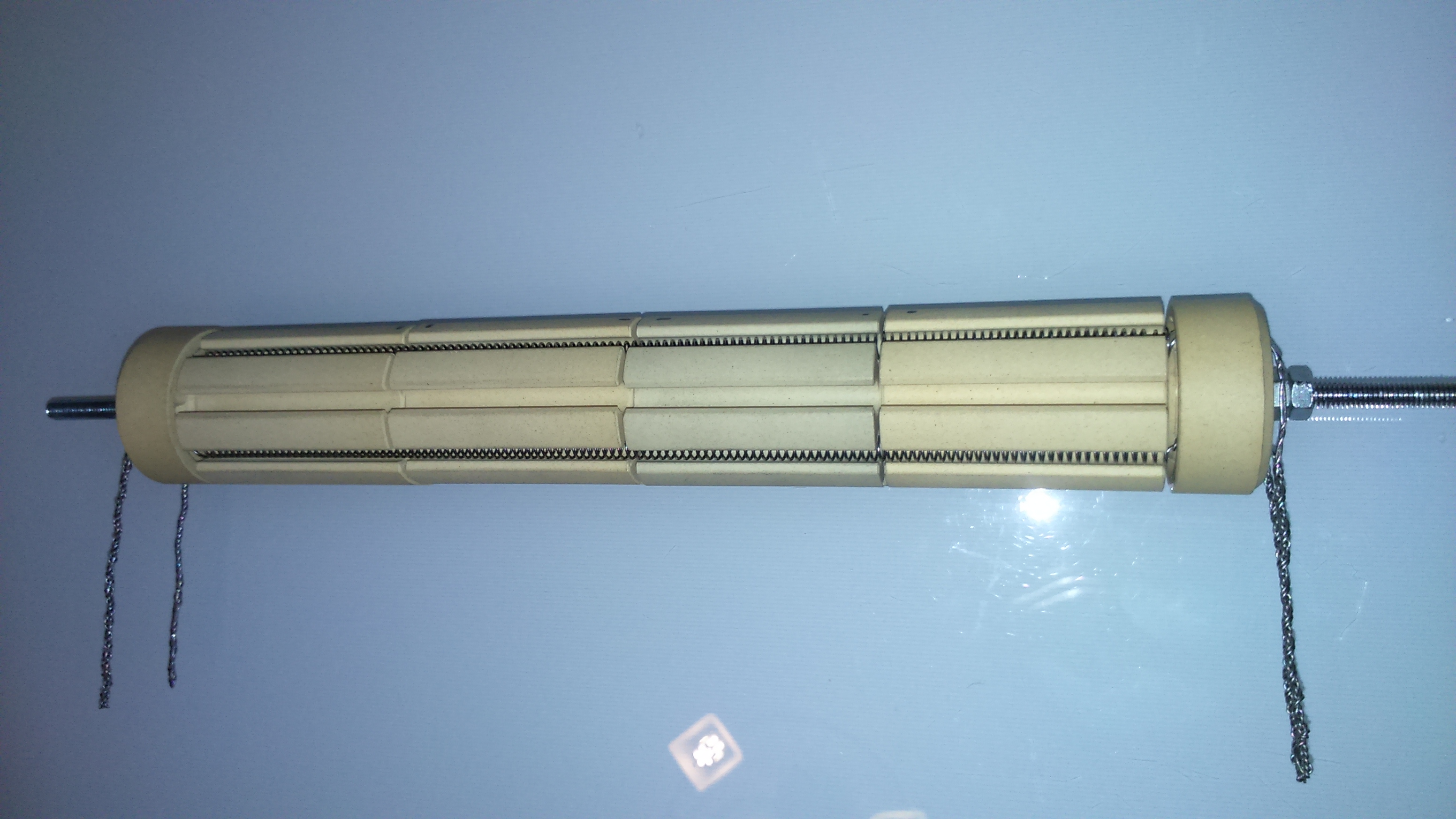 Cała opornica będzie się składała z trzech równolegle połączonych odcinków tej spirali, a łączna moc opornika 840W.