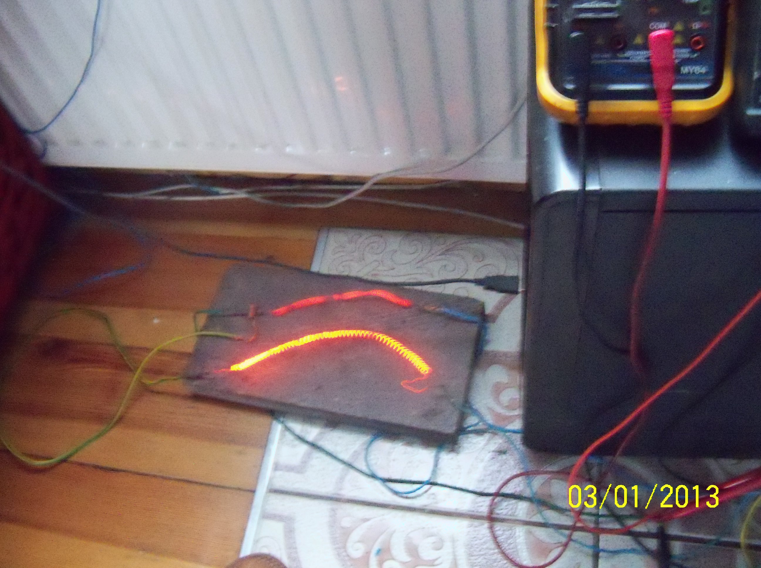 Równolegle połączone grzałki mają "zimny" opór 2.52 Oma, a to może dać moc do 1.8kW przy 70V. Spirale radziły sobie z takim krótkotrwałym przeciążeniem.