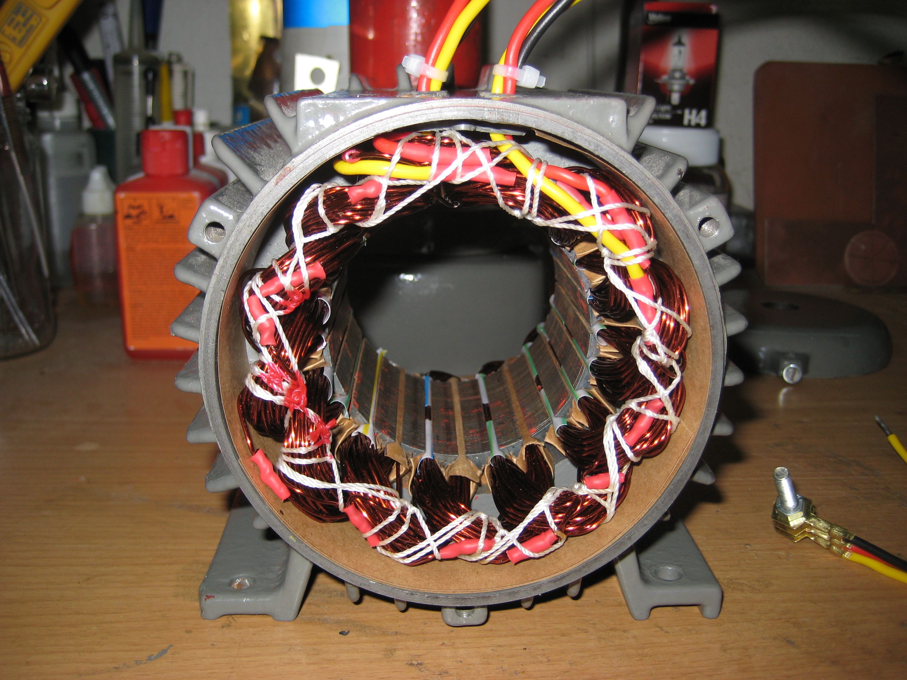 Stojan prądnicy podłączony w gwiazde i nawinięty drutem 1,0mm