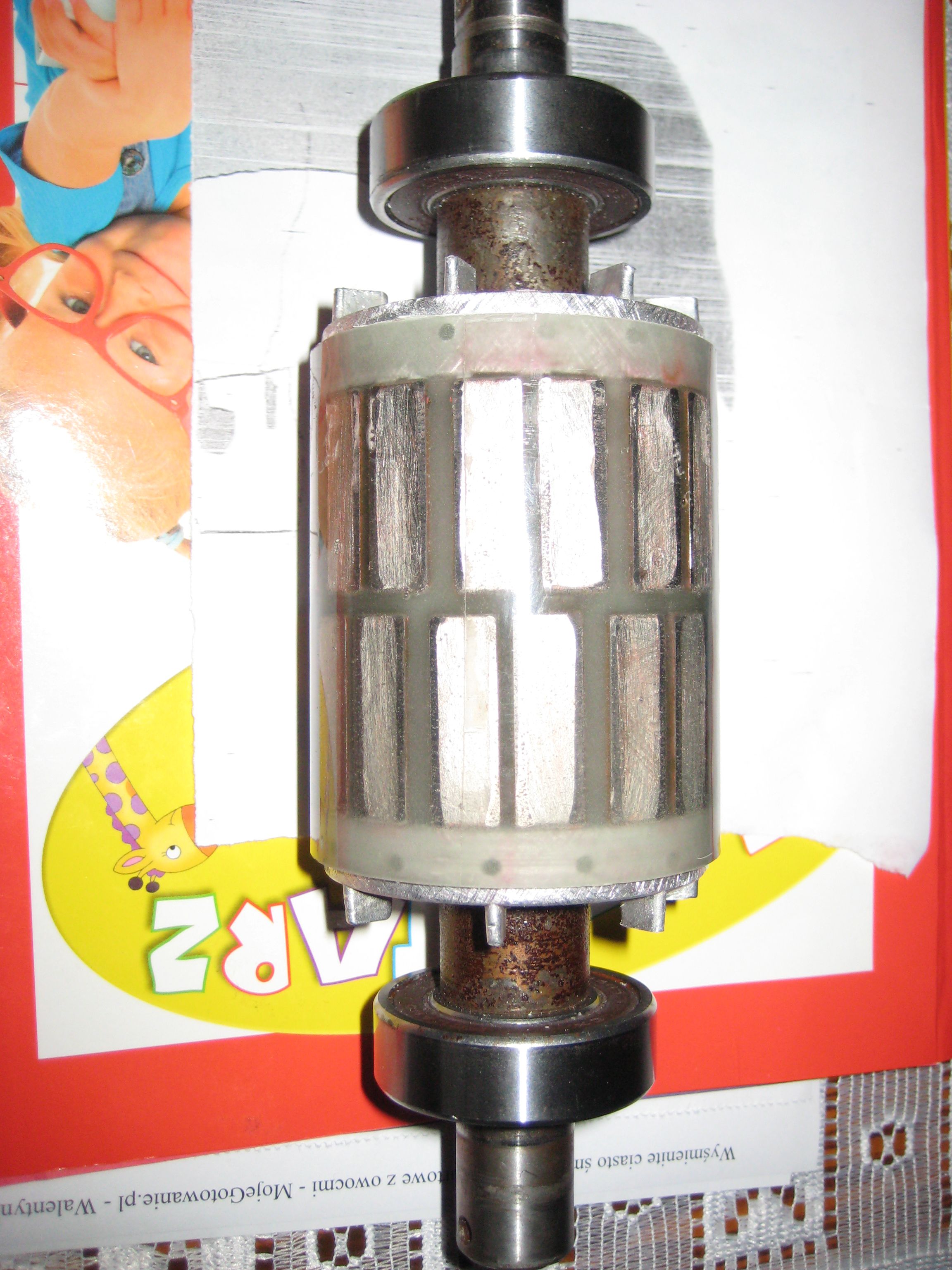 Łopaty kupowałem bo niemam warunków na wytworzenie podobnych. A co do prądnicy to zrobiona jest z silnika 3F 0,55kW, jeśli dobrze pamiętam na cewke weszło 34zw drutu o średnicy 1,0mm, długość stojana 63mm i średnica wirnika 65mm, żłobki napchane aż do zasówek. Za dużych prób nie robiłem ale mam nadzieje że ok 400W z niego przy duuużych wiatrach wycisne. Ładowanie zaczyna sie już do nie całych 180obr/min, ale przy -/+300obr/min przy podłączonym naładowanym aku 12V60Ah szło 12A i 16V, czyli prawie 200W. 24 żłobki w tym silniku mi nie przeszkadzają, ponieważ śmigło jest szybko obrotowe i dopiero przy wyższych obrotach jest w stanie oddać swoją moc. Do prądnicy podłączony będzie aku 120ah więc ogranicze prąd ładowania do 12-14A regulatorem obrotów.