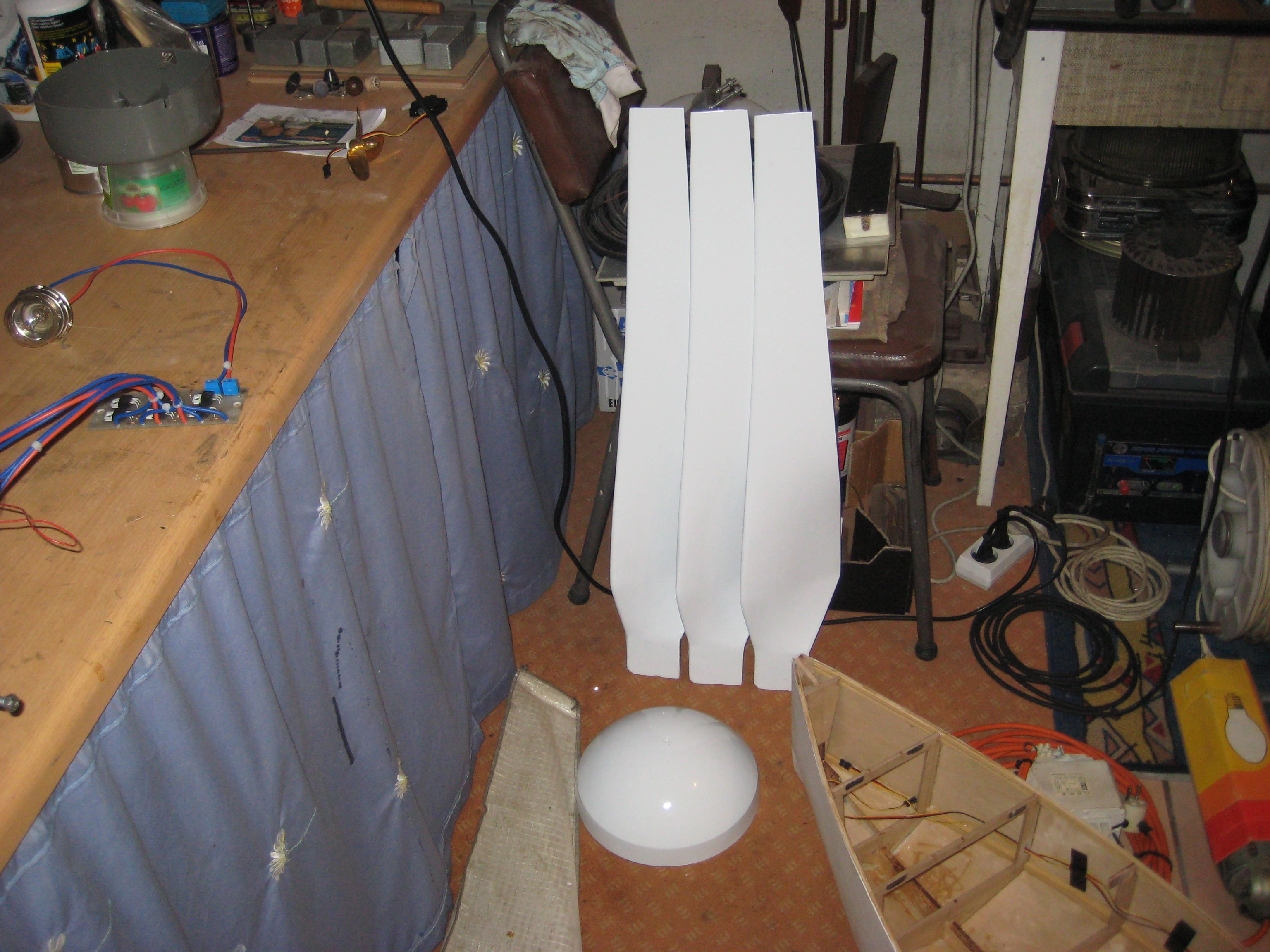 Całość będzie ładowała akumulator 12V 120Ah. Akumulator bedzie tu głównie stabilizatorem napięcia w pracy buforowej.Zakres cyklu pracy pracy to 12-14,3V. Wrzuciłem tu przebrane fotki z prac nad turbiną. Z postępem prac wrzuce kolejne fotki.