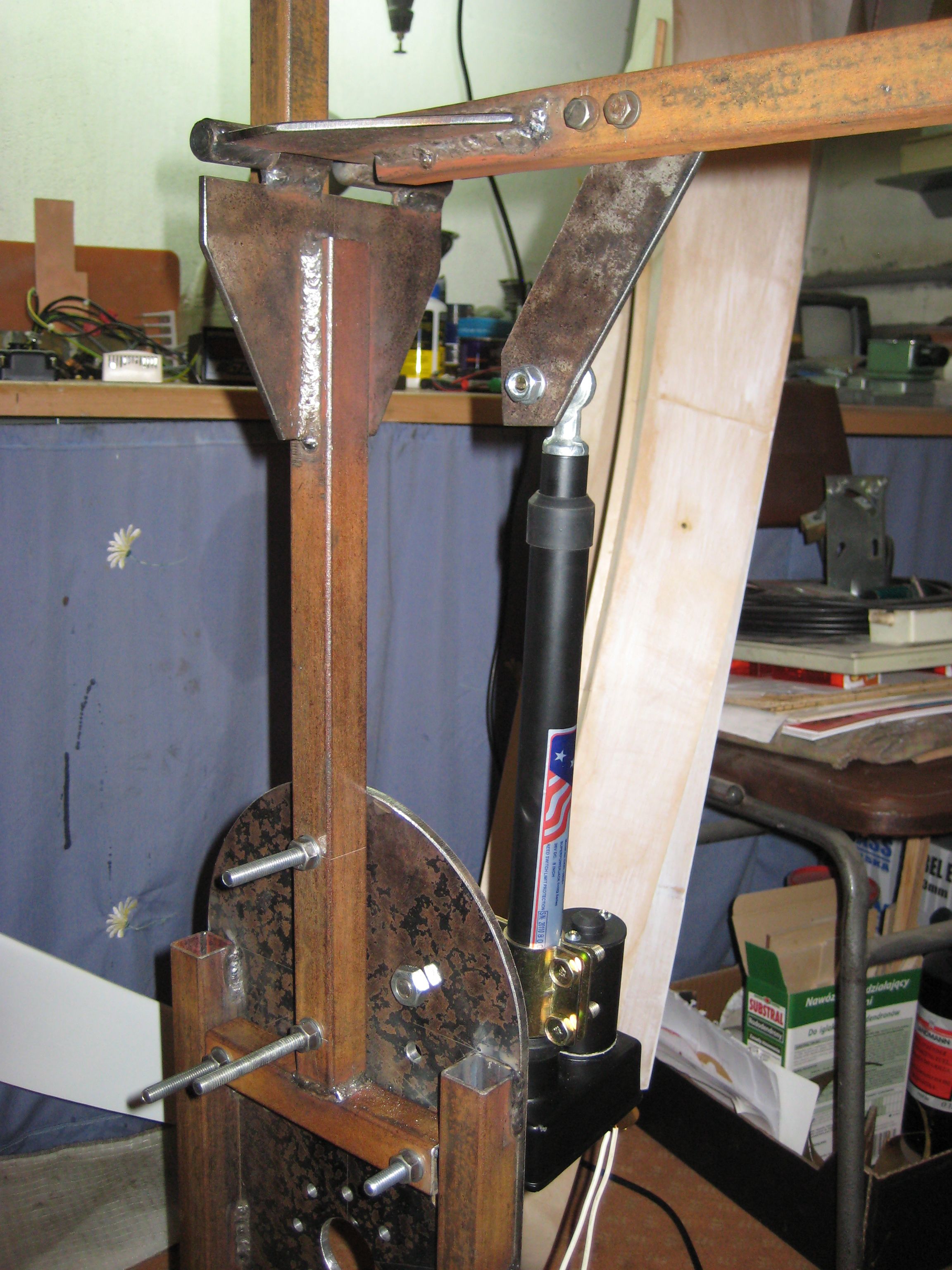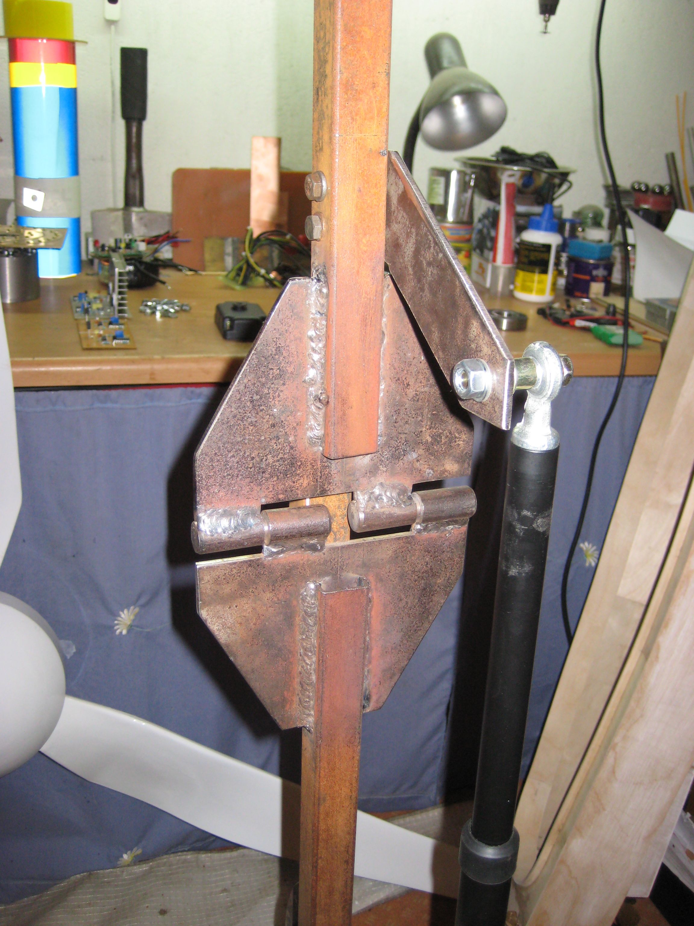 Witam. Zawiasy sie nie wysuną, blokują sie nawzajem. Obrotomierz to obrotomierz regulator J-129 z Jabla, do tego czujnik indukcyjny. Siłownikiem steruje przekażnik zmieniający bieguny w przewodach do siłownika.Siłownik Jest na 24V, a zasilam go 12V. Mam nadzieje że da rade. Ogon składa sie o 90 stopni, i trwa to 3 minuty w każdą strone. A może ktoś wie jak zrobić aby obniżyć pierwotne napięcie siłownika do 12V? Odwinąć troche drutu z wirnika ? Zobaczymy jak w akcji sobie poradzi.