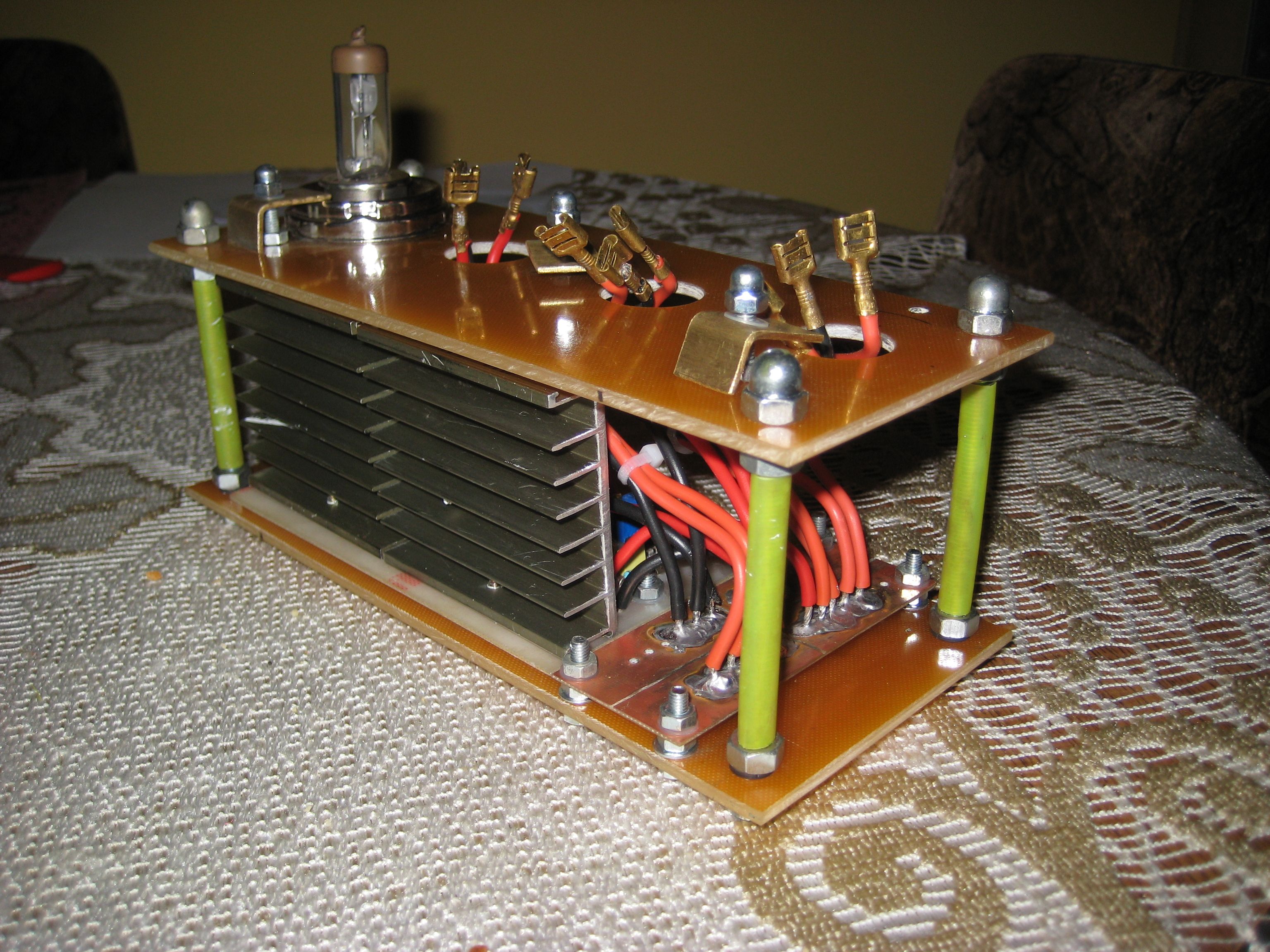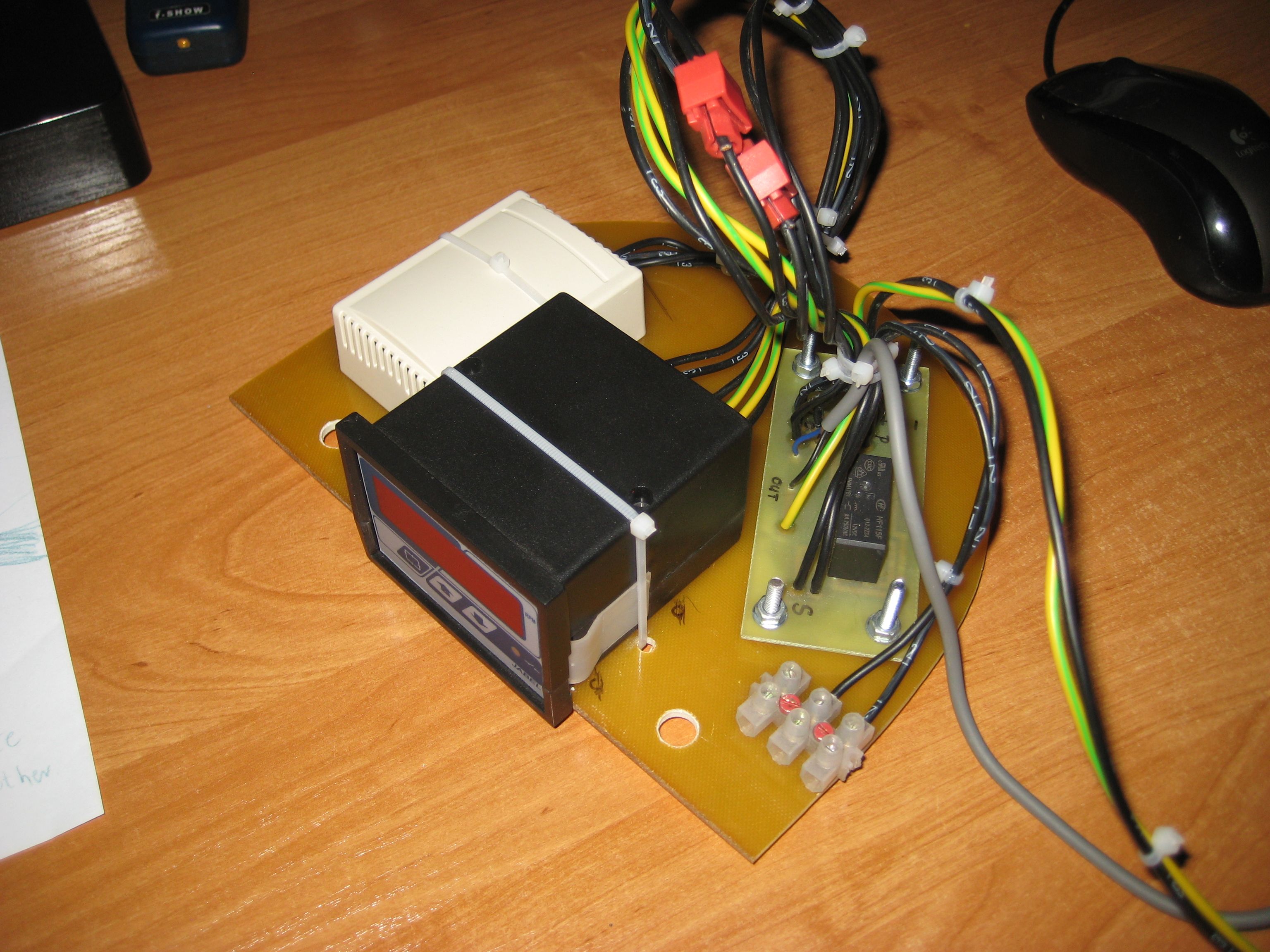 Wkładka z zamontowanymi elementami sterującymi. Obrotomierz, przekażnik sterujący siłownikiem, mostek prostowniczy, i sterowanie 1- kanałowe włącz-wyłącz do ręcznego składania ogona przy dużych wiatrach