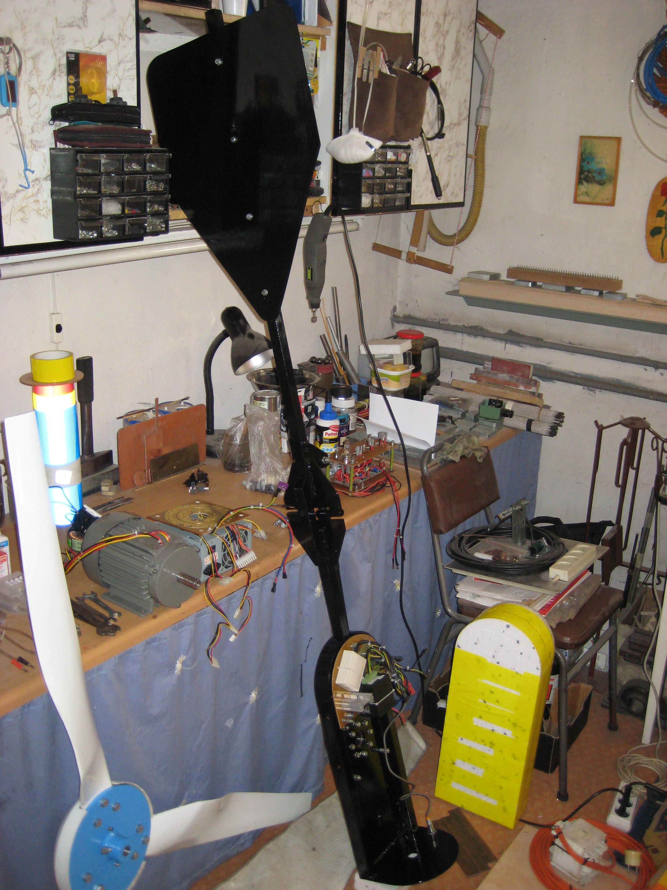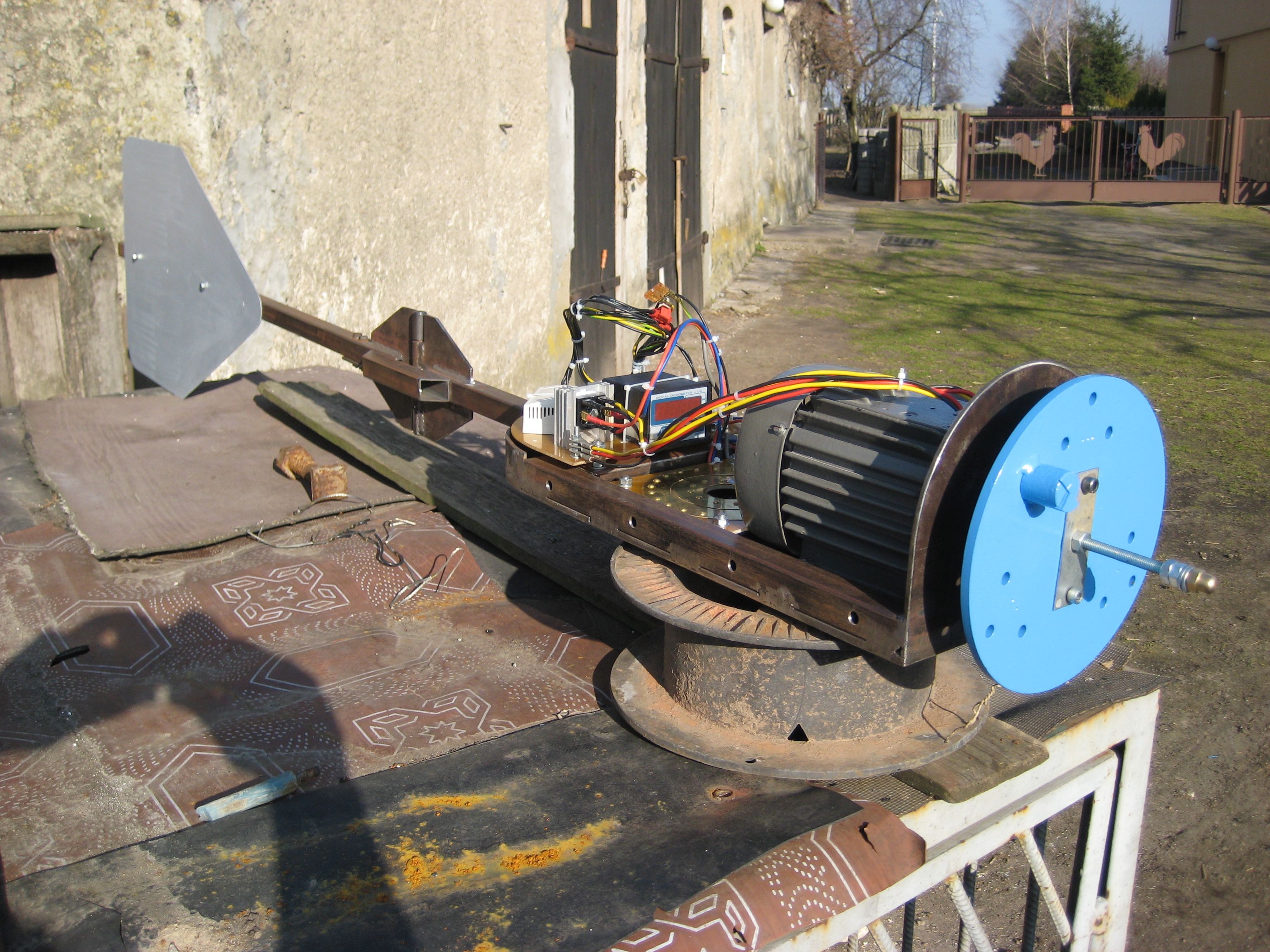 Juriii gratuluje bardzo ładnej i solidnie wykonanej konstrukcji wiatraka. Składanie ogona za pomocą siłownika, to moim zdaniem idealne zabezpieczenie przeciw burzowe. Nie zapomnij dać zabezpieczenia na zawiasach ogona żeby nie wysunęły się do góry. Podczas składania ogona siłownik będzie musiał pokonać dość duże siły żyroskopowe wiatraka. Mam pytanie, jaki zastosowałeś obrotomierz w swojej konstrukcji?