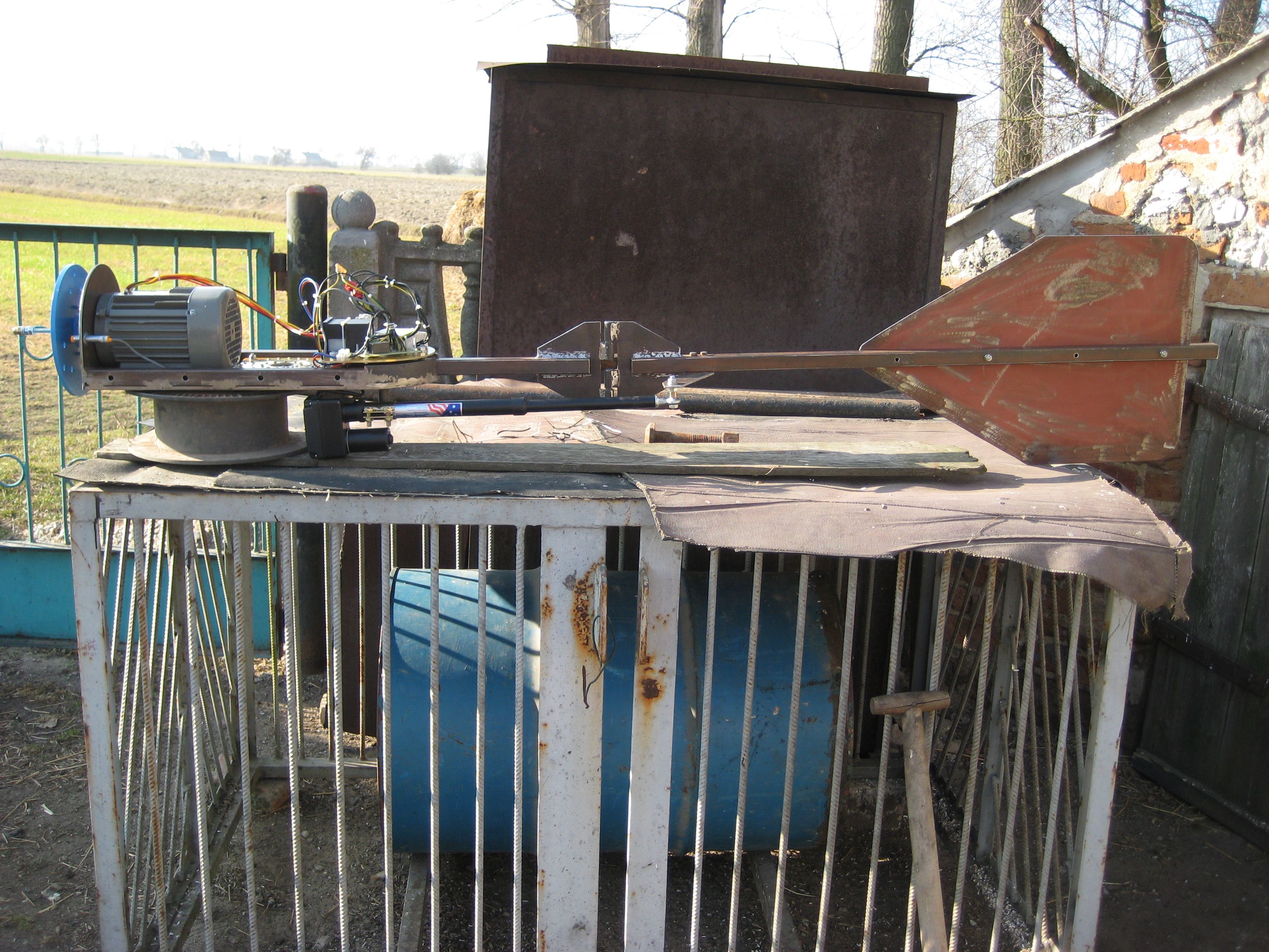 Witam kolegów konstruktorów. Ponieważ budowa mojej drugiej, bardziej zaawansowanej konstrukcji dobiega końca, chciałbym wrzucić tu pare fotek z budowy. Średnica rotora 1540mm, długość konstrukcji od śmigła do ogona 1800mm. Prądnica to przerobiony na magnesy stałe silnik 3F 24 żłobki o mocy 0,55kW. Ogon będzie składać siłownik elektryczny sterowany obrotomierzem.