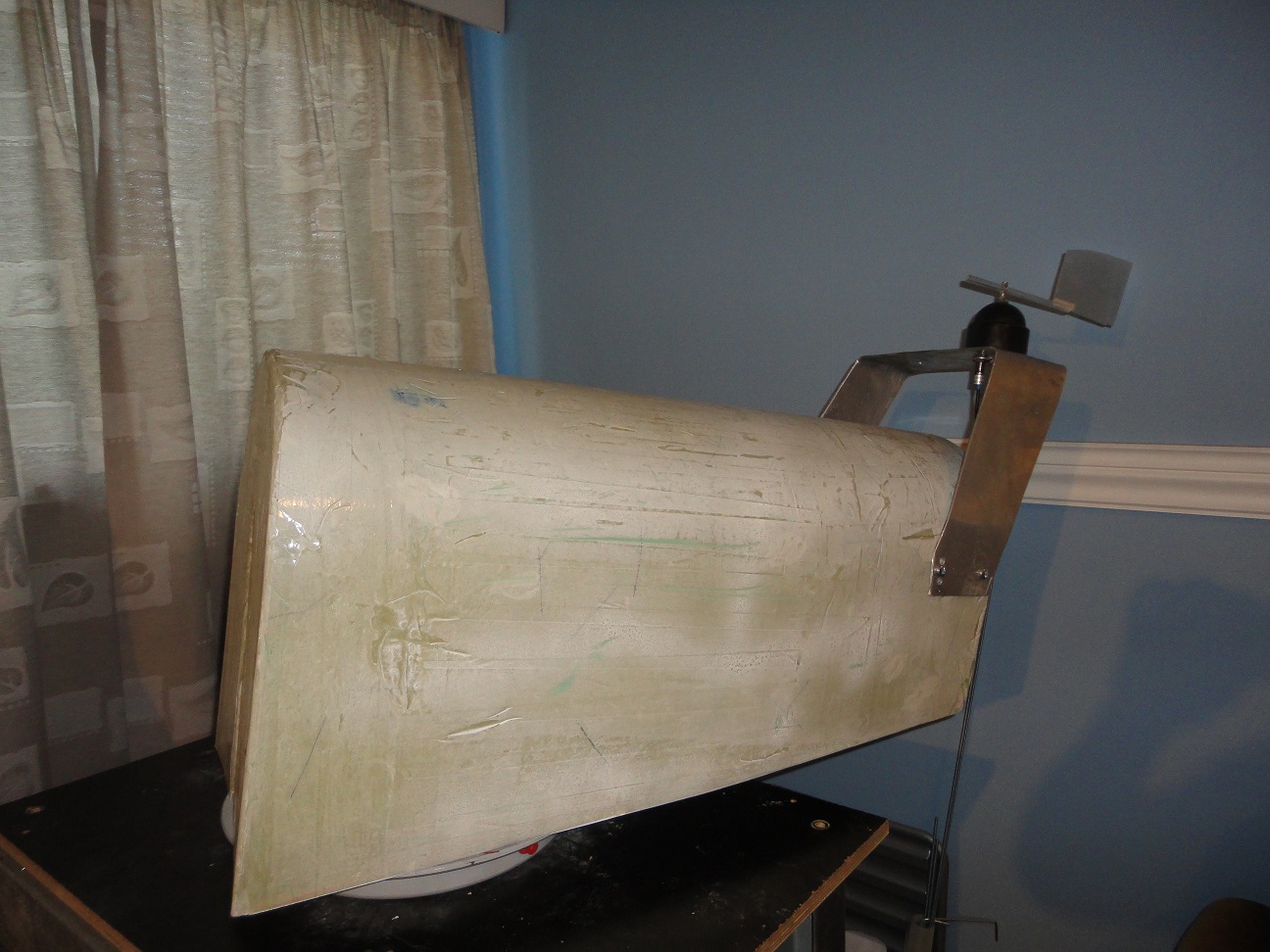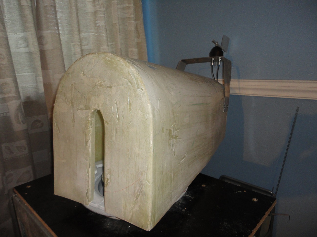 Zrobiłem też już obudowę z włókna szklanego i spojler na którym będą czujniki kierunku i wiatru .