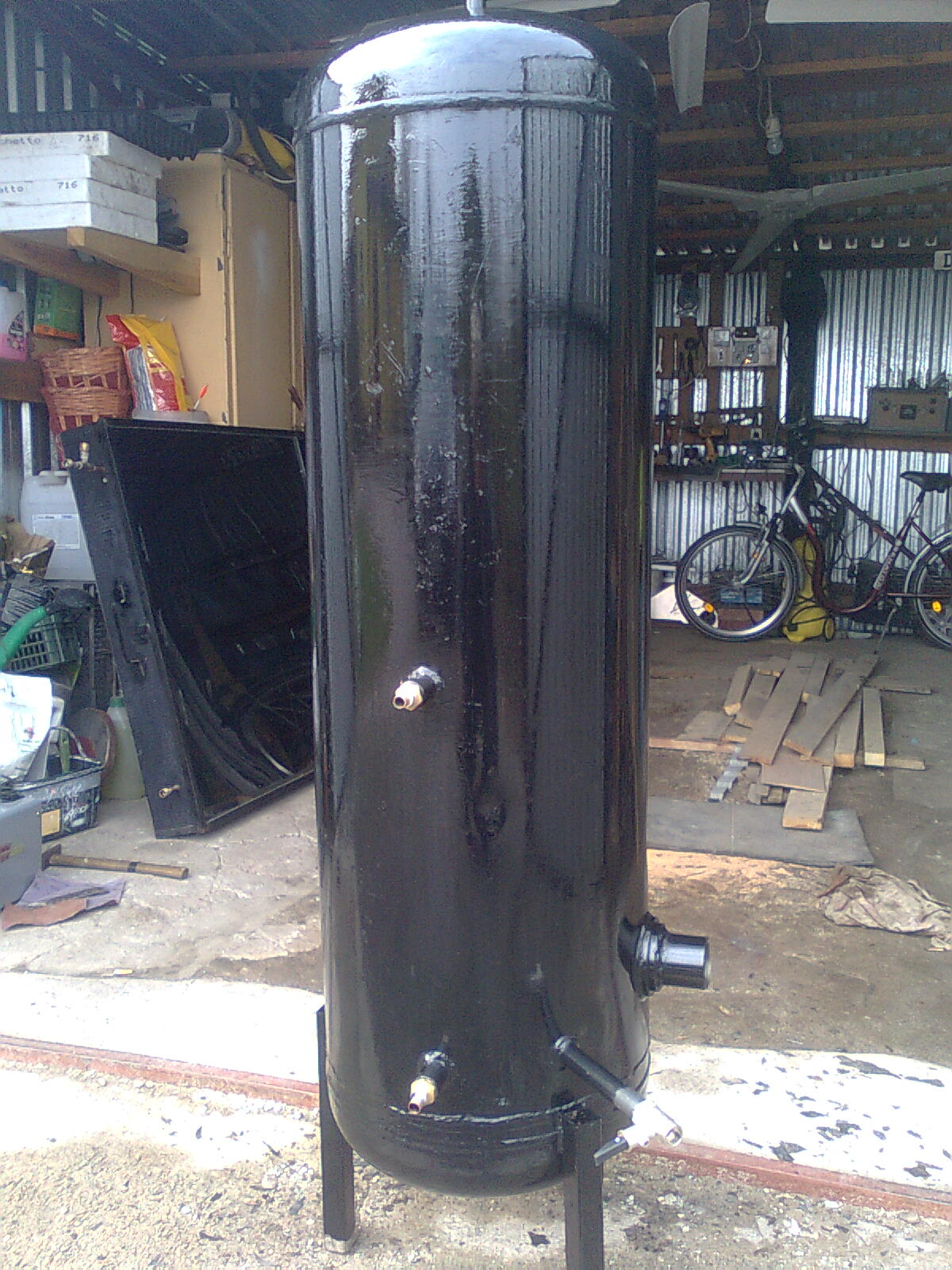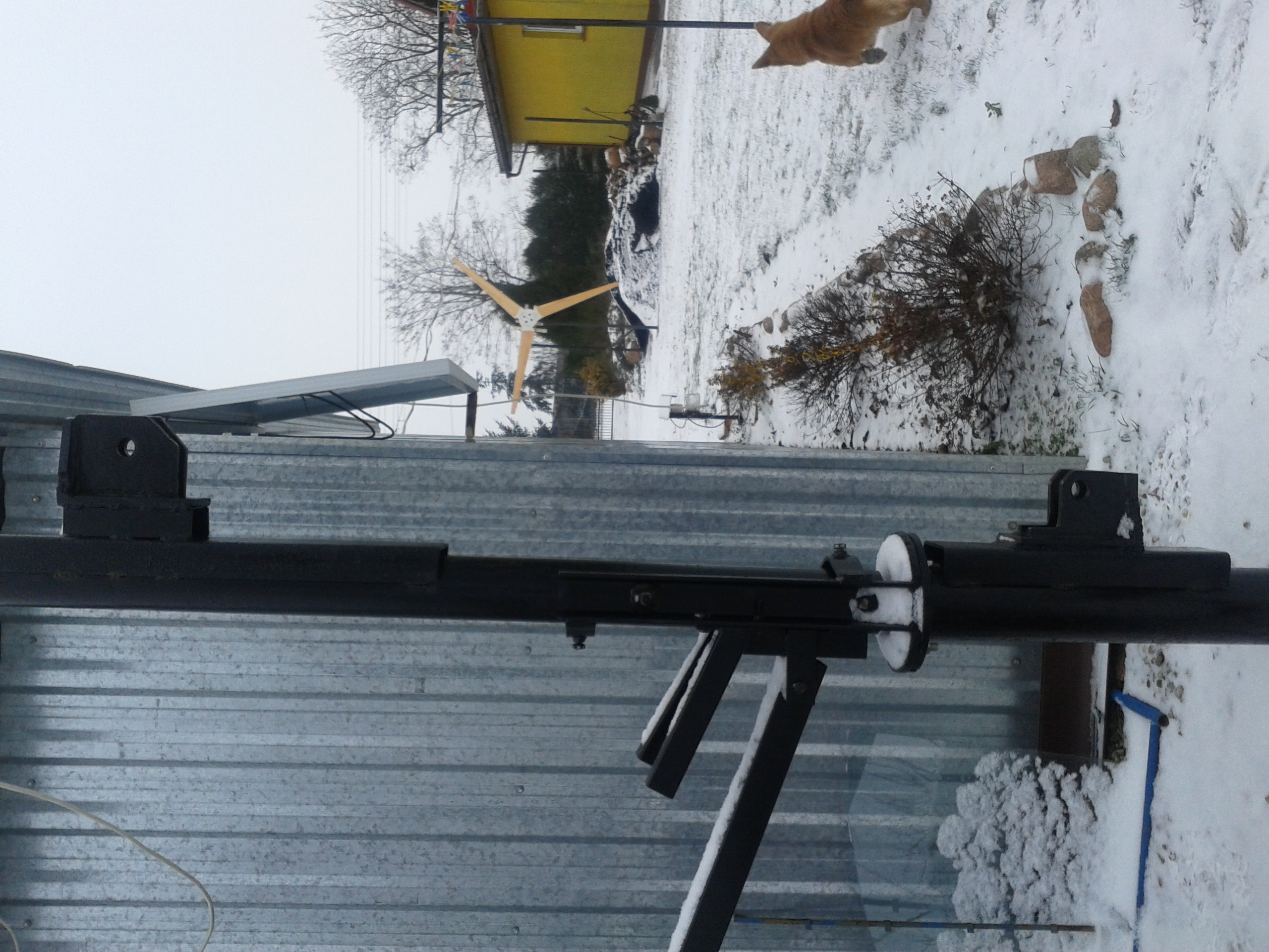 Sterownik składania ogona wiatraka jest już gotowy. Jego fotka jest w dziale Sterownia. Pozostało mi tylko jego wyskalowanie i montaż do szafy sterowniczej. Budowa małej MEW dobiega małymi kroczkami do końca. Później pozostanie się tylko cieszyć z podmuchów wiatru (wszystkim Wam tego życzę) lub słońca, bo do MEW dołączyłem baterię fotowoltaiczną i darmowych kilowatów. Między innymi ideą mojej MEW jest zasilanie kotłowni, z czego już korzystam, a latem układu solarnego, który również zbudowałem sam i przetestowałem w tym roku. Sprawdził się i jestem zadowolony. Testowałem kolektor w kwietniu tego roku. W kilkanaście minut 4 litry wody podgrzał do temperatury 55 stopni. Wymiennik zrobiony z butli od gazu 110 l. W środku umieściłem wężownicę z miedzi 12 mb rurki z starej chłodziarki od mleka. Obieg wymuszony za pomocą pompki Co, całość sterowana sterownikiem. W przyszłym roku MEW i instalacja solarna będą tworzyć całość mojego źródła energii odnawialnej. Tak to wyglądało w budowie.
