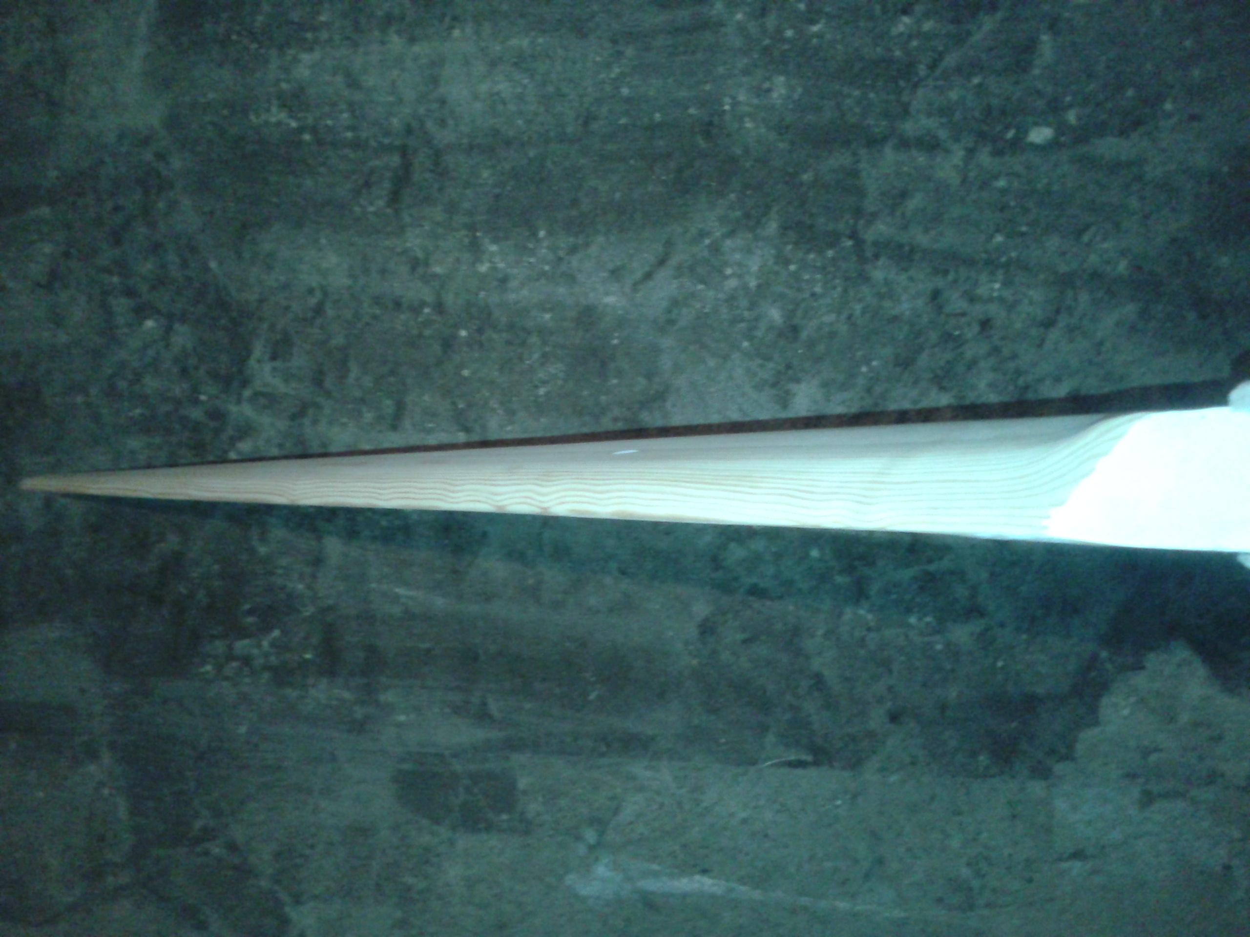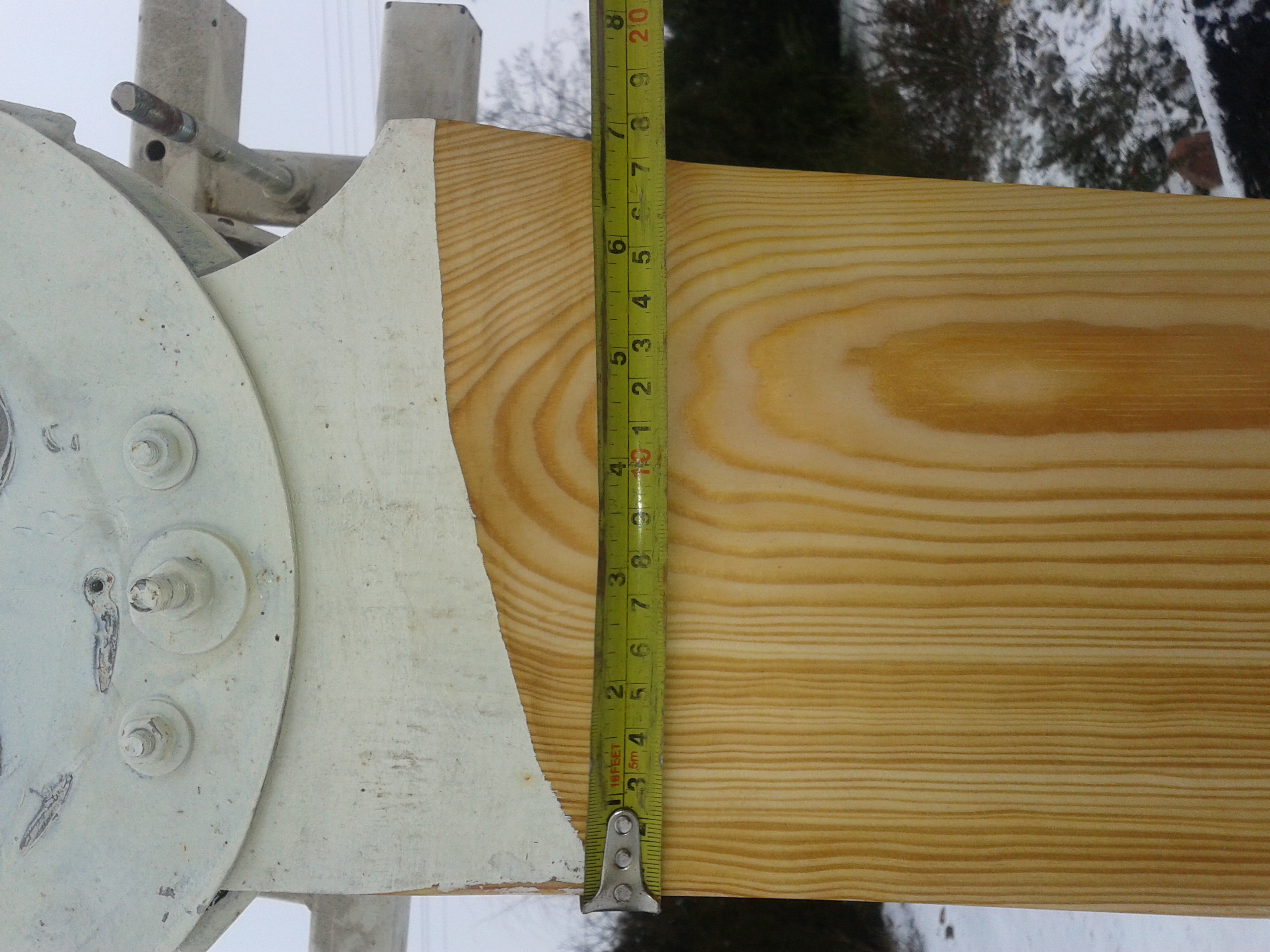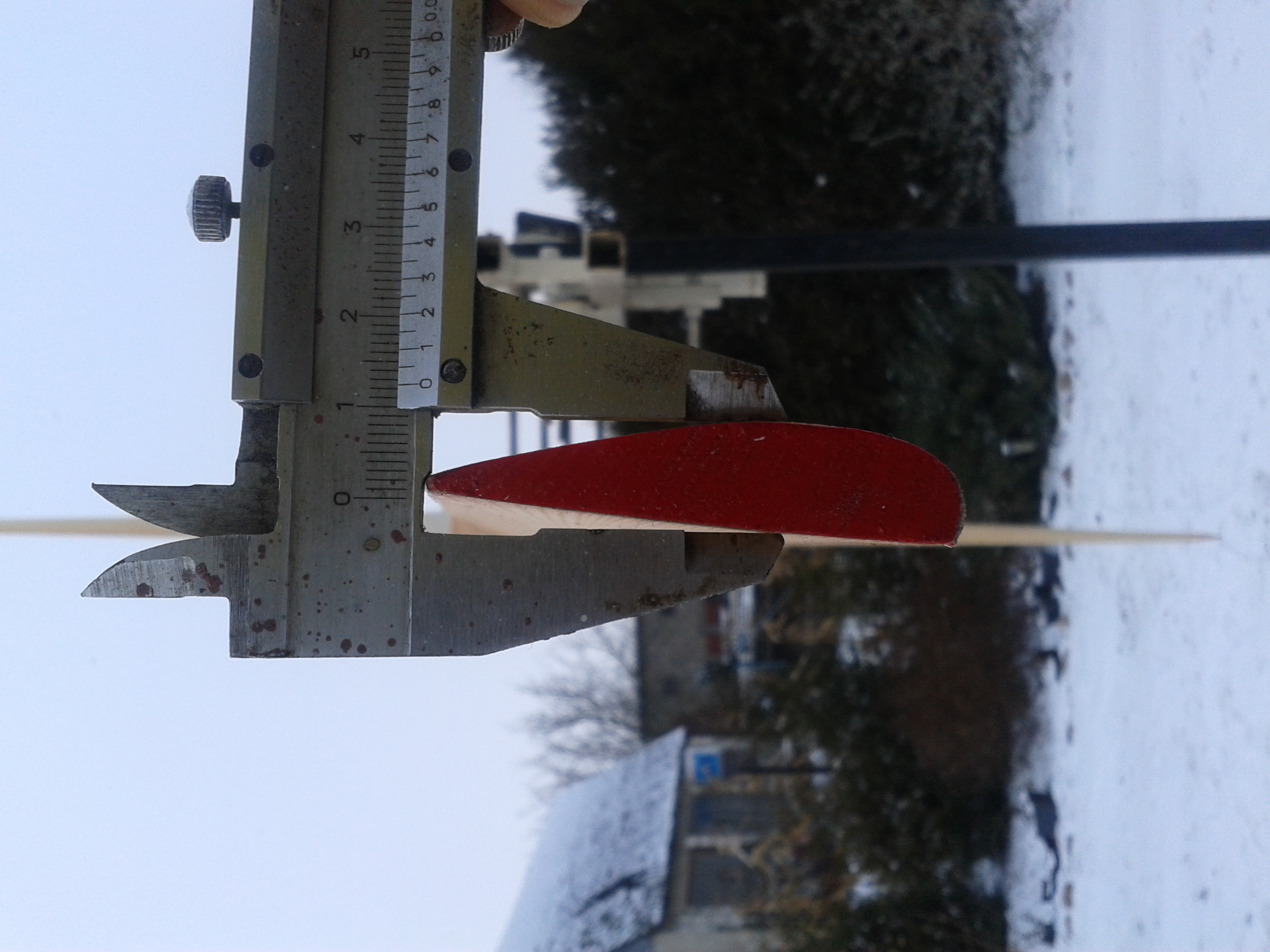 Dopracowałem też moje śmigło, które niegdyś pracowało przy mojej amerykance. Teraz będzie pracowało zamiast śmigieł z rury PCV. Śmigło z drewna sosnowego sezonowanego, o jednolitych słojach (ma tylko jednego małego sęczka), średnicy 2,5m po złożeniu w całość. Jedna łopata (część pracująca) ma długość 1,2 m. U nasady szerokość 180 mm, grubość 40mm, na końcu szerokość 60mm, grubość 12 mm.Do jego wykonania użyłem: grubościówki, piłki ręcznej do drewna, struga stolarskiego, szlifierki kątowej z tarczą do szlifowania drewna oraz uchwytu uniwersalnego do szlifowania papierem ściernym. Dane do wykonania łopaty pochodzą z jakiejś anglojęzycznej strony (były w calach). Łopaty były konserwowane podgrzanym pokostem lnianym i lakierem poliuretanowym o wysokiej odporności na czynniki zewnętrzne. Pomalowane białą farbą do drewna, która została teraz zeszlifowana w celu dopracowania niedociągnięć. Śmigła ponownie zostały zabezpieczone lakierem. Dzisiaj było prawie bezwietrznie, więc udało mi się je wstępnie wyważyć. Były ustawione bokiem do kierunku wiatru( widać było po dymie z komina), a mimo tego po wyważeniu przy niewielkim wiaterku startowały. :) Czekają na ponowne malowanie na biało, ale jest mróz i muszą poczekać. Końcówki pomalowałem na czerwono aby lepiej oddały swój kształt na fotkach. Tak wygladają ;)