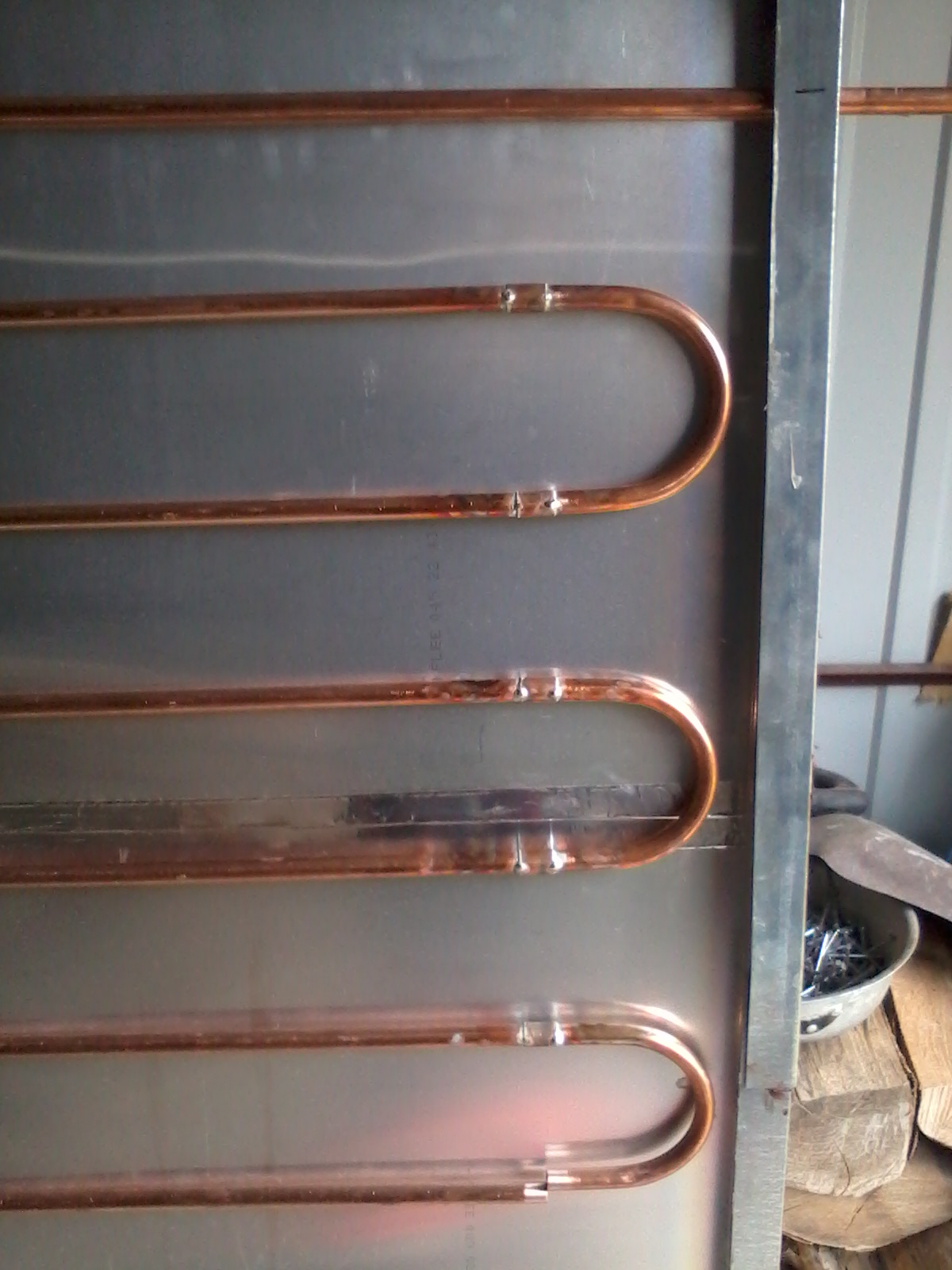 Cały kolektor buduję w układzie meander z rurki cu 15 około 29mb .Kolana z rurek wyginałem sam bo fabrycznych nie ma w takim łuku.