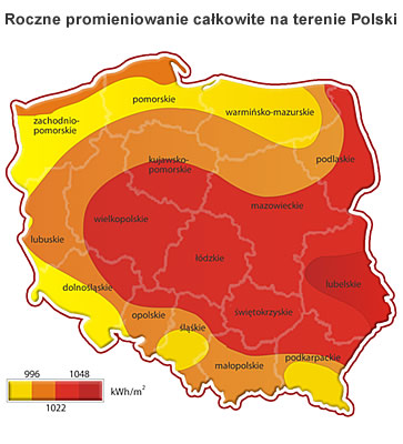 Taki mały offtopic, znalazłem a może komuś się przyda. Roczne promieniowanie całkowite na terenie Polski.