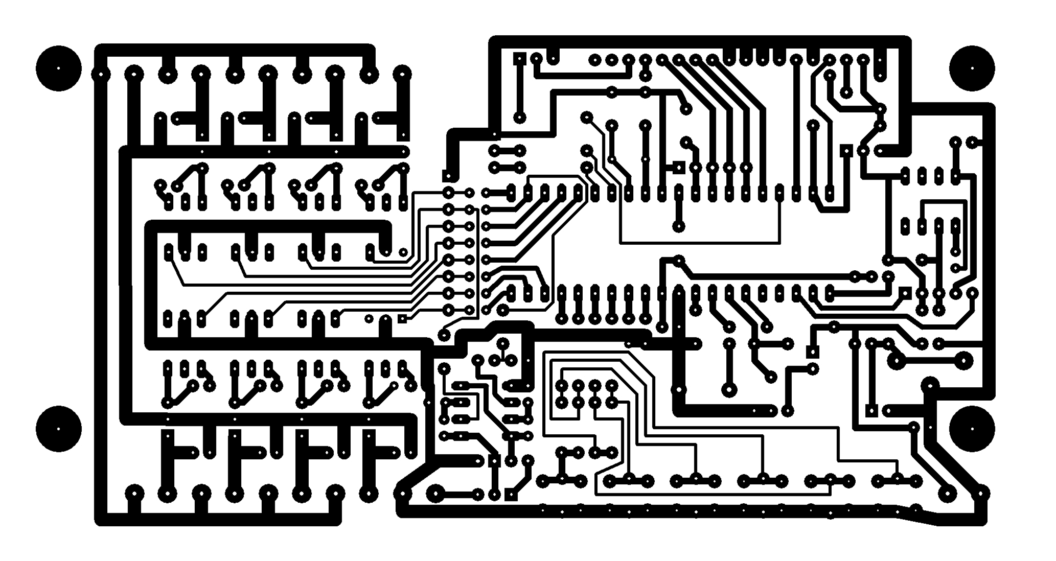 Wydruk z drukarki laserowej lub ksero na folii. Niestety jakość zaczernienia najczęściej jest poniżej wszelkiej krytyki więc taką operację trzeba wykonać dwukrotnie lub na jednej folii wydrukować dwa razy tę samą płytkę (jak na zdjęciu poniżej). Tu uwaga: drukujemy obraz od strony elementów.