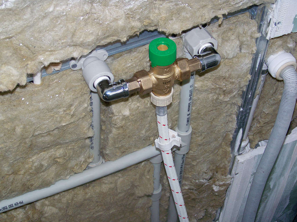Temperatury pilnuje zawór TM50 (Honeywell). Można na nim ustawić od 30 to 65 st.C.