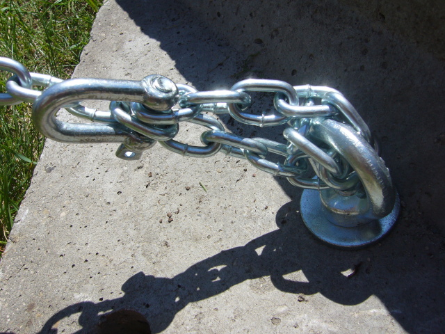Maszt podtrzymywać będą 3 odciągi, z czego 2 zakotwiczone w ziemi i 1 przytwierdzony do ściany domu. Linki odciągów przymocowane będą do technicznego łańcucha galwanizowanego (DIN 5685/A o średnicy 6 mm), który przymocowany jest do betonowego bloku.
