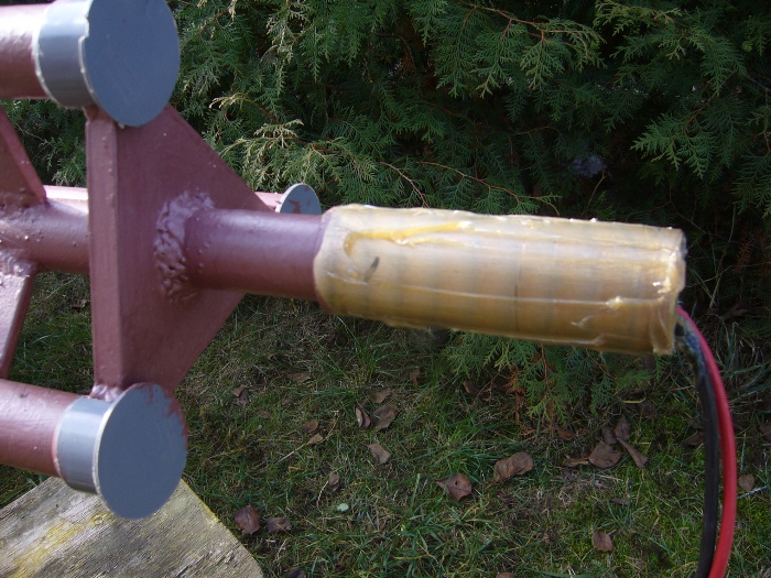 Ukośna rurka posłuży do wpuszczenia przewodu w dół masztu.
