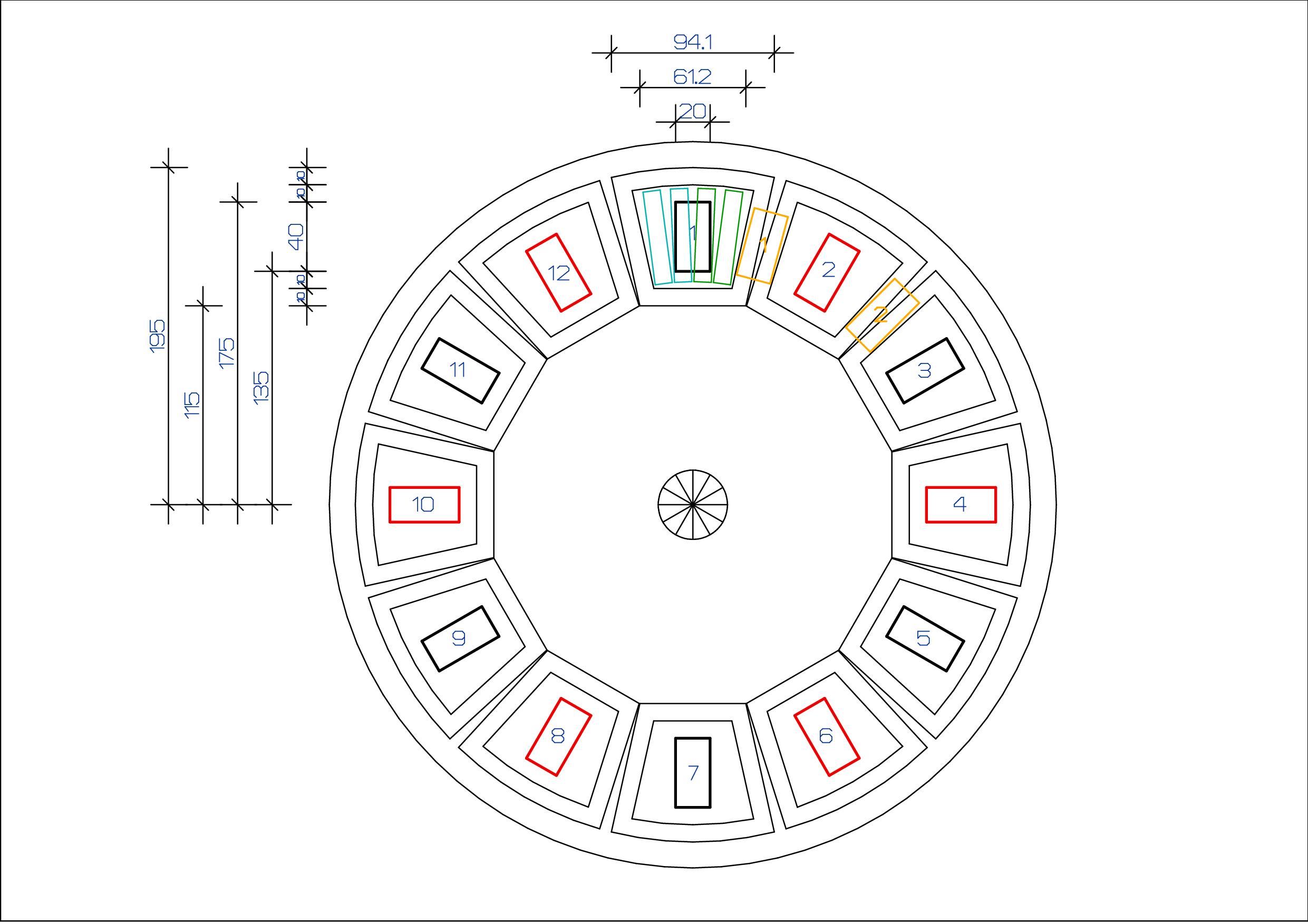 ( na powyższym rys uwidocznione są jedynie cewki z środkowej warstwy )