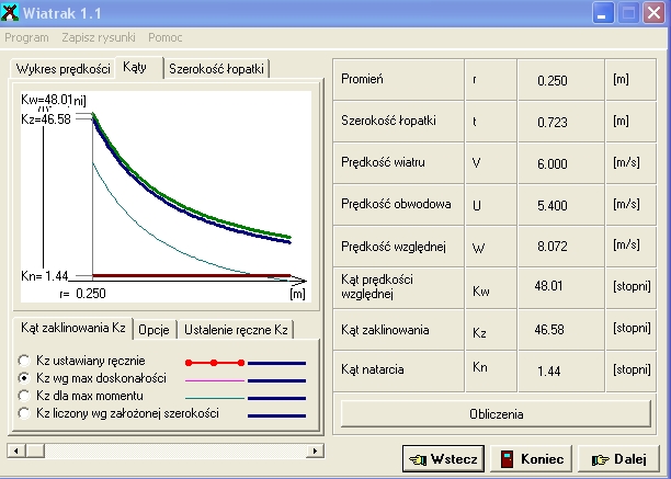 1 - Mamy omówione już parametry wiatru, śmigła i mocy, czyli 6m/s, 2,5m i 198W.