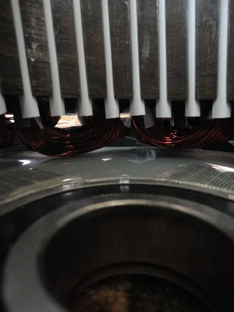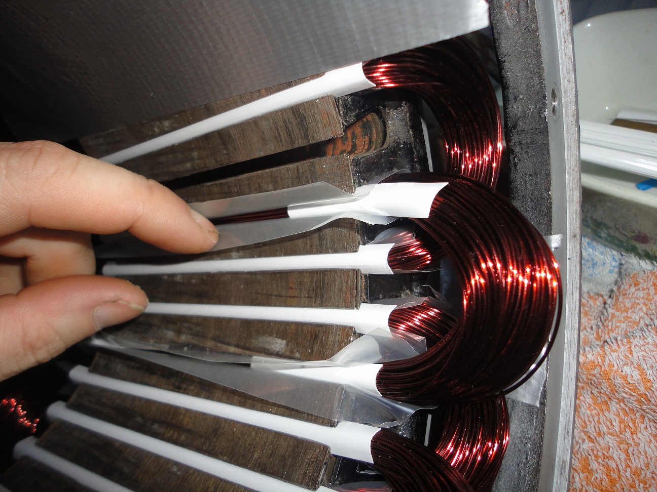 Na innym zaś sposób w jaki wkładałem cewki ,żeby nie kaleczyć ich o zęby stojana(taki jakby lejek z folii).Nadmiar folii poliestrowej obcinałem ostrymi nożyczkami i wsuwałem pełnej długości kliny/wsuwki poliestrowe.