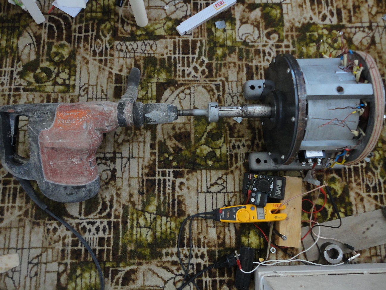O moje nadgarstki się nie martwię bo prądnica stoi na podłodze a wiertarka jest w taki sposób unieruchomiona ,że moim zadaniem jest tylko sterowanie wyłącznikiem.To sama wiertarka jest tak zbudowana ,że powyżej jakiegoś momentu zaczyna przeskakiwać i nie ciągnie.