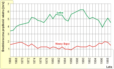 Oczywiście wiatr powyżej 10m/s to rzadkość dla kilkunastu mnpm. Dla porównania średnioroczne prędkości wiatrów dla dwóch skrajnych miejsc w Polsce na wysokości 30 mnpm