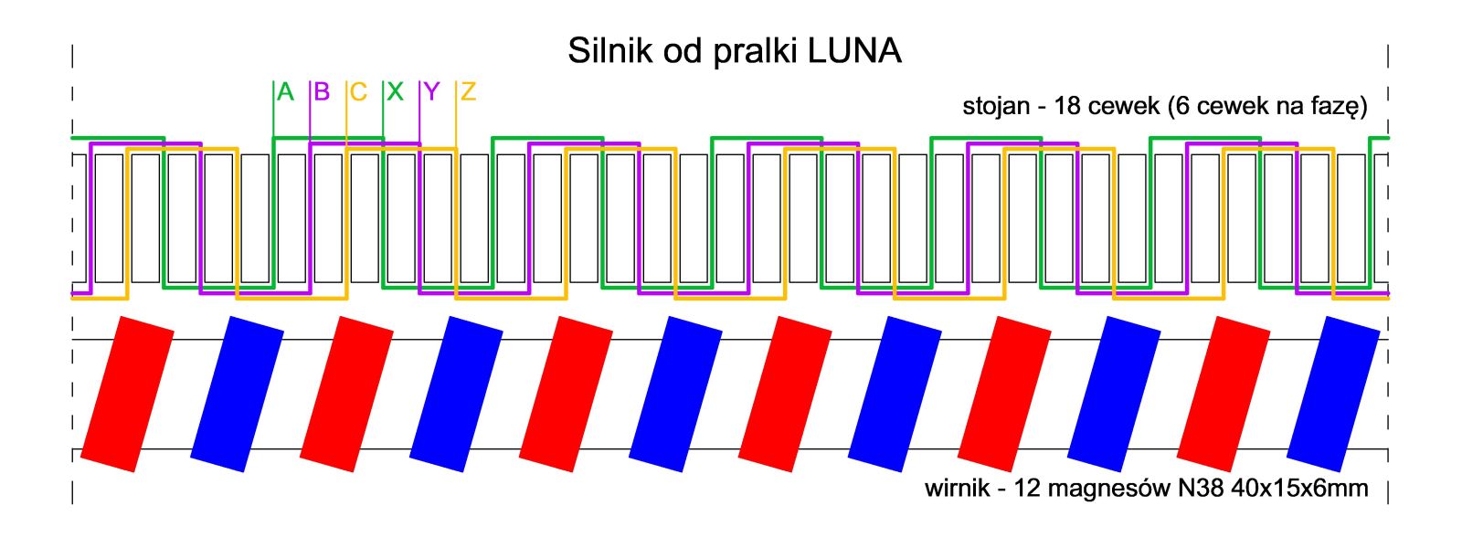 Jeśli chciałbyś ładować bezpośrednio akumulator 12V lub np 24V trzeba silnik przewinąć grubszym drutem.