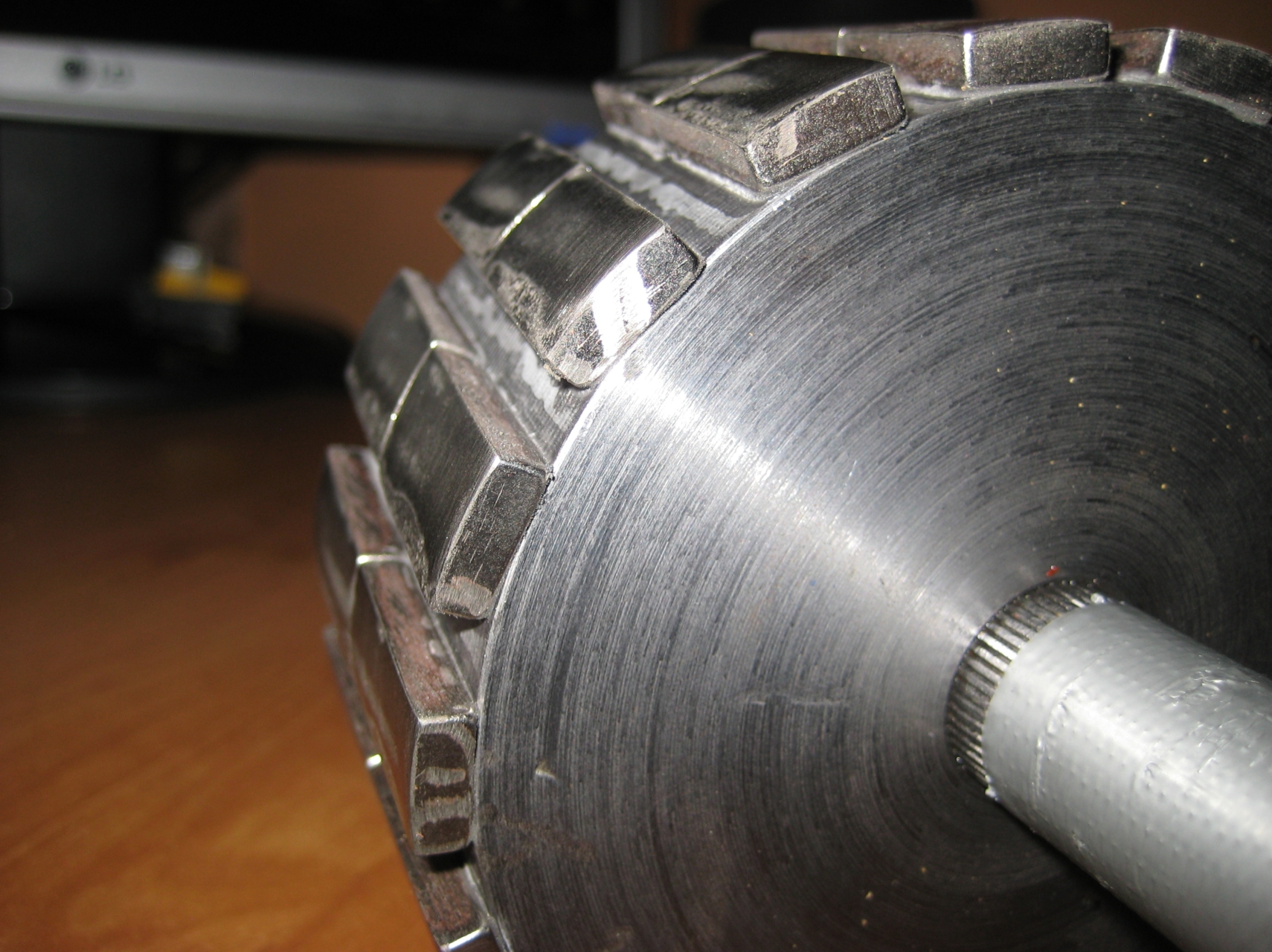 Sposobem zminimalizowania tych szkodliwych prądów byłoby wykonanie tych trapezowych bloczków wypełniających z poklejonych (lub fachowo znitowanych) płytek blachy transformatorowej – takiej samej jak blachy stojana. Nie wiem czy te bloczki blachy transformatorowej dałoby się dostatecznie mocno zamocować na wirniku, tak żeby nie odpadły przy dużych obrotach....